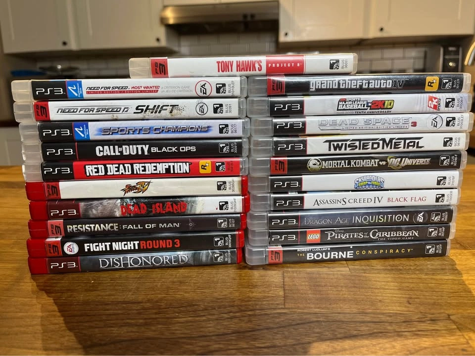 Selling a working PlayStation 3 with cables (not pictured) and 21 games. Unfortunately no controller here.