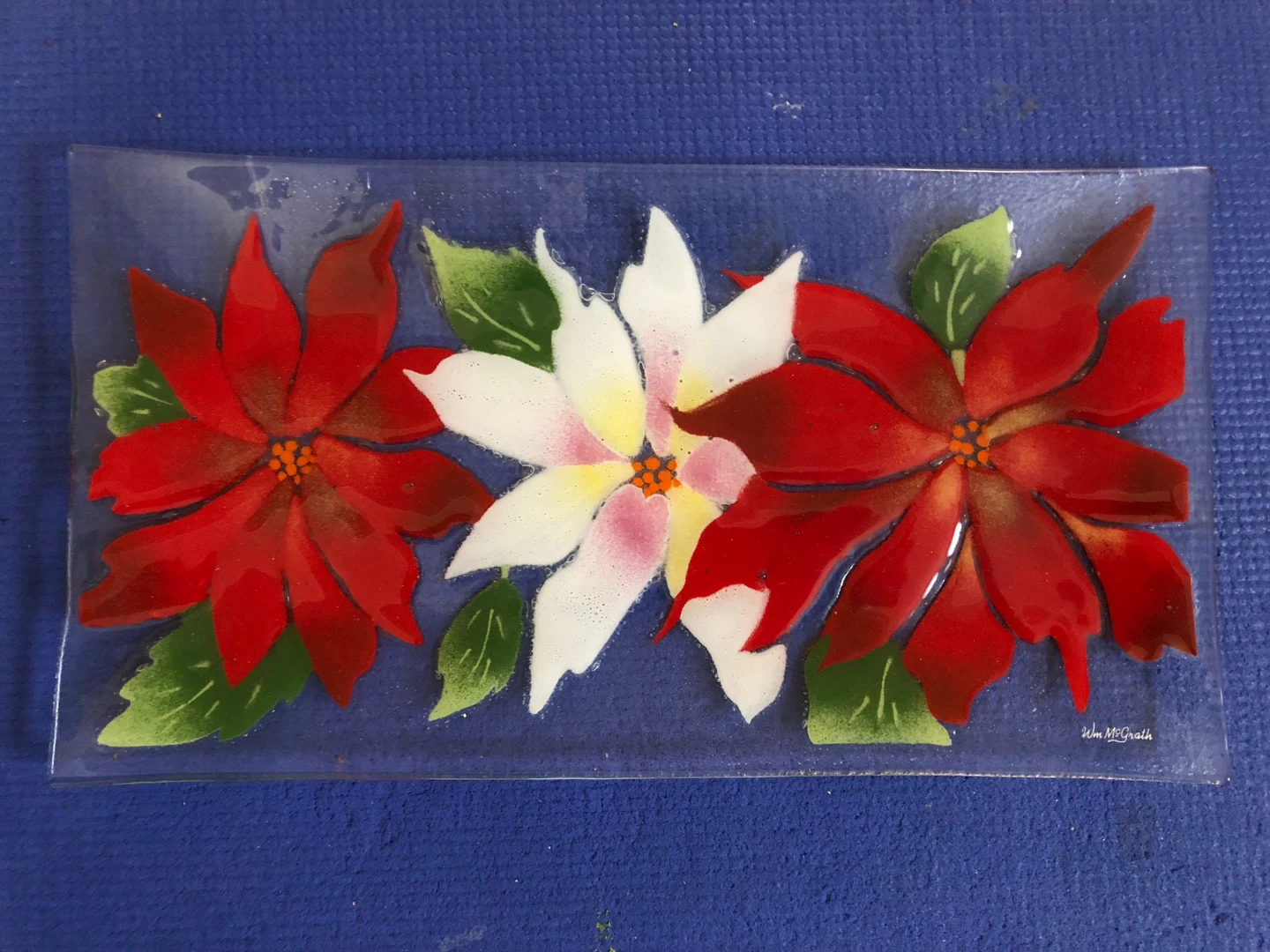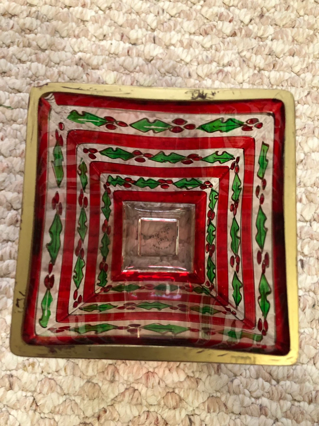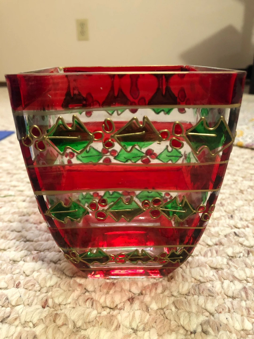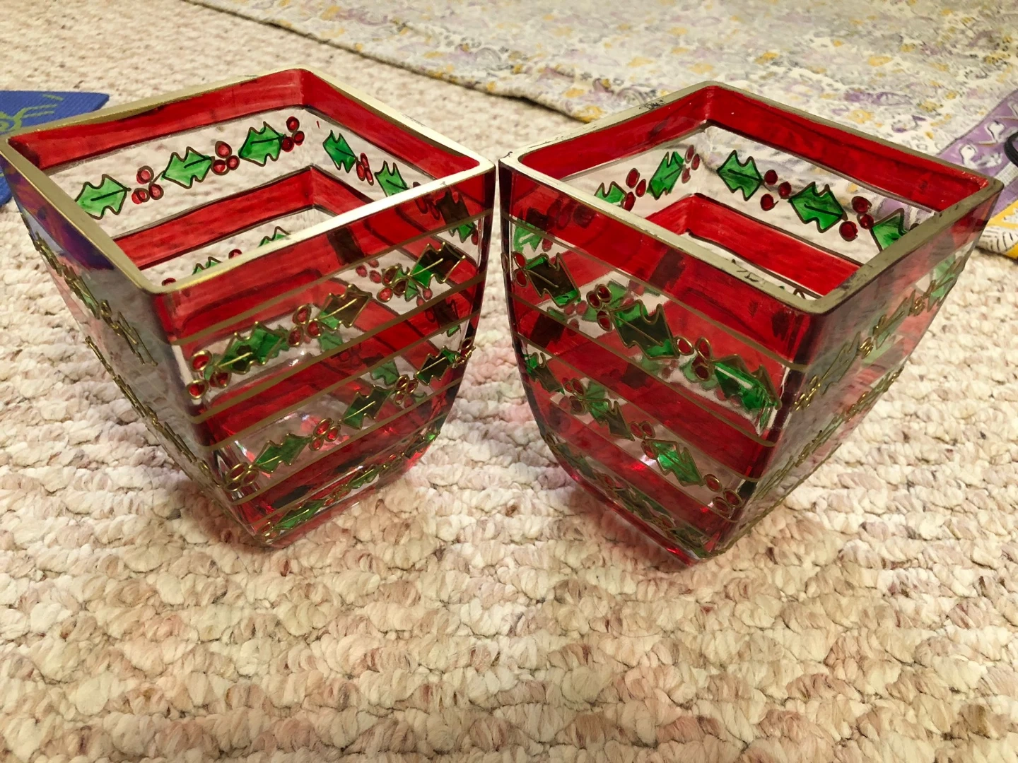 Selling a set of festive holiday decor! This set includes two square vases with a holly and berry design, and a rectangular tray featuring red and white poinsettias. Perfect for adding a touch of holiday cheer to your home