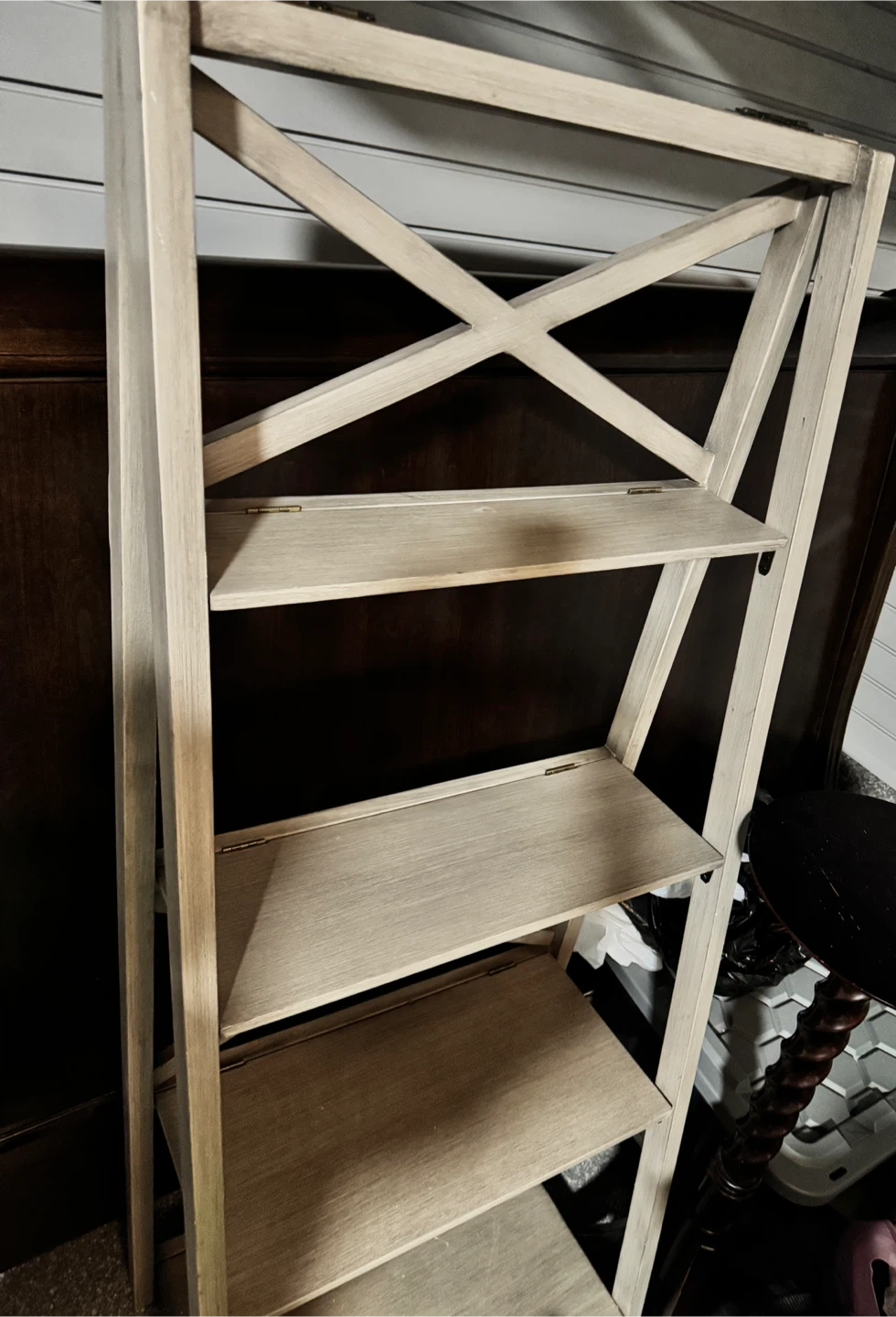 Selling a light grey ladder shelf. It's perfect for adding a touch of style and extra storage to any room. It’s in great condition and ready for a new home!