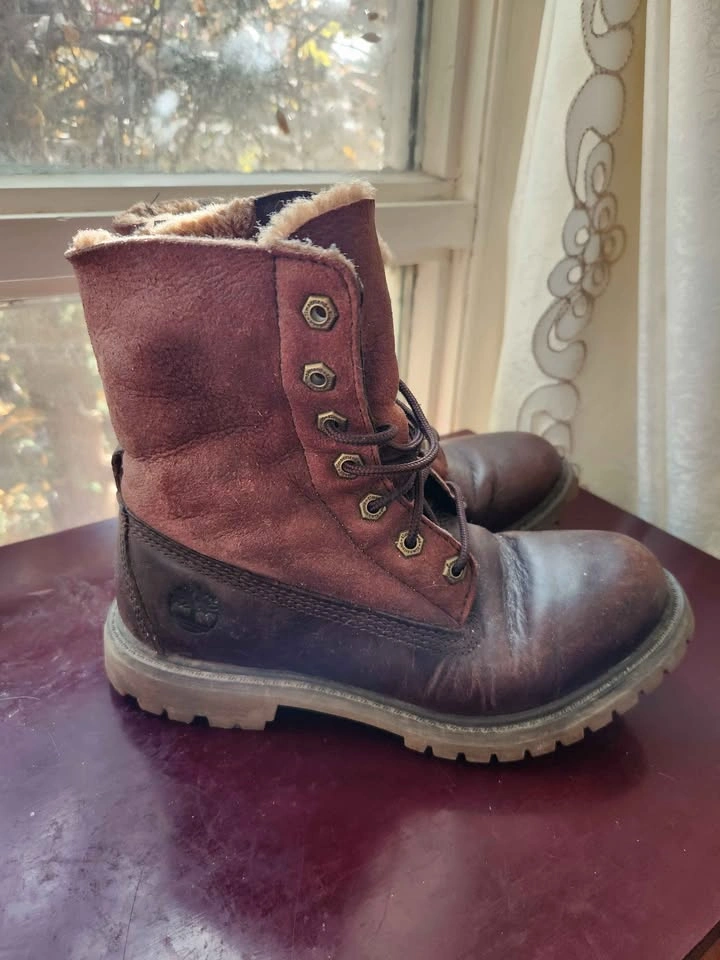 Timberland Boots Women 7 Brown Fur Suede