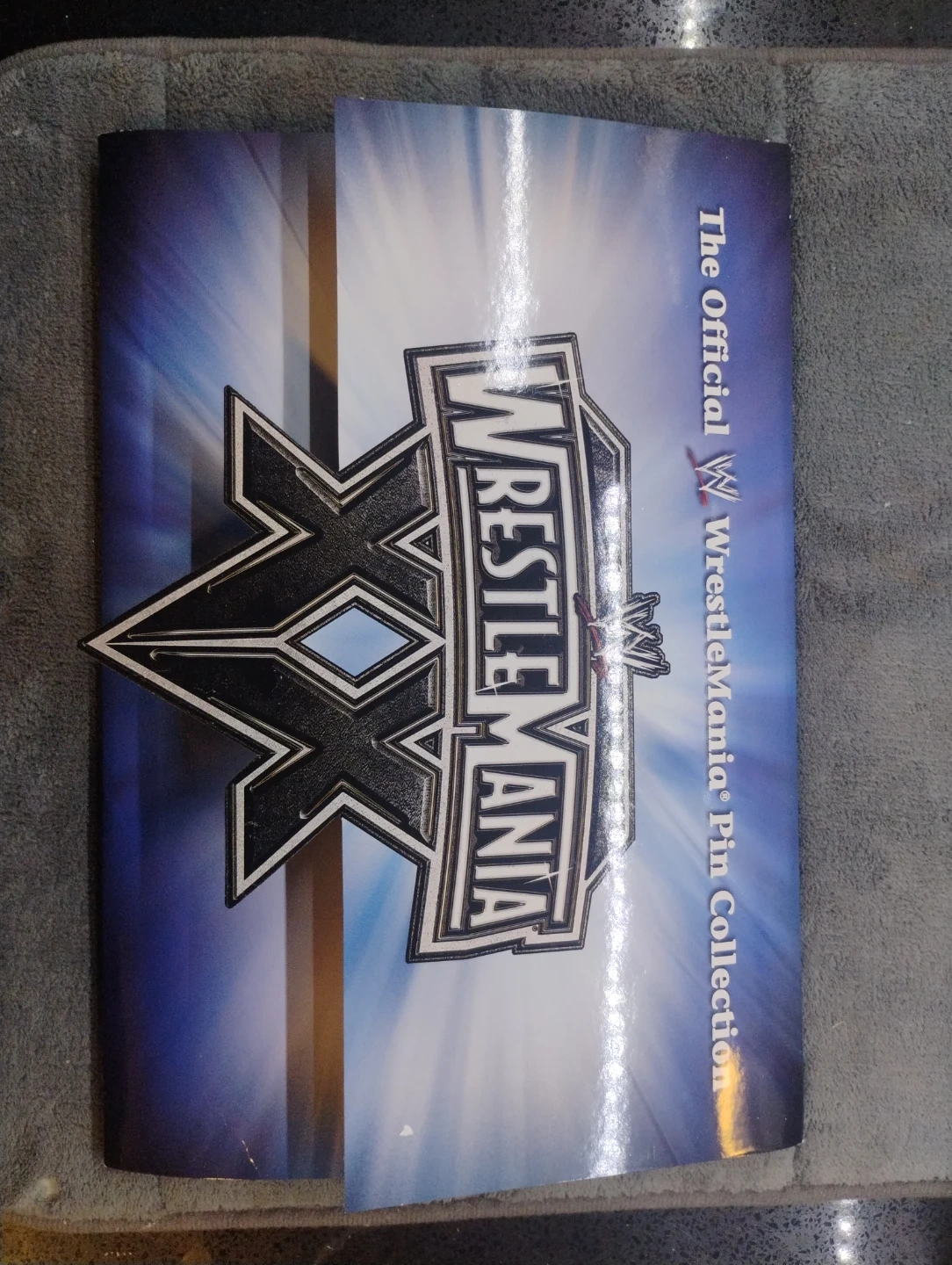 Selling a WWE WrestleMania pin collection! It includes various pins commemorating different WrestleMania events. A great addition for any wrestling fan or collector!