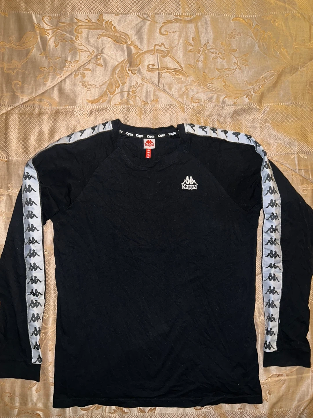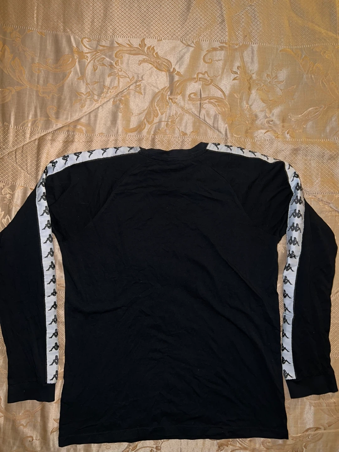 Pre owned Size M black and white long sleeve Kappa shirt. Possible stain on left sleeve, it’s probably paint but I don’t remember honestly