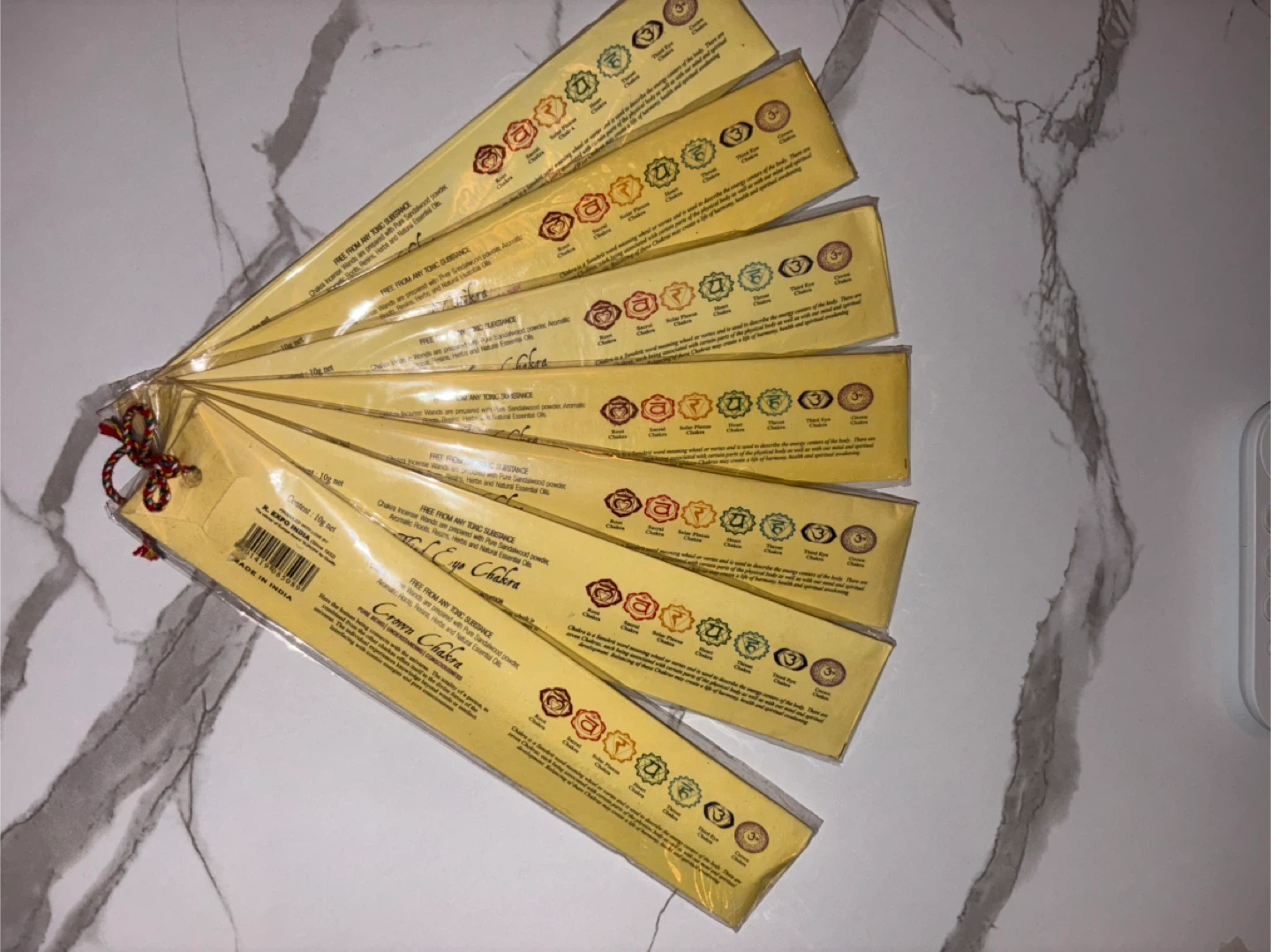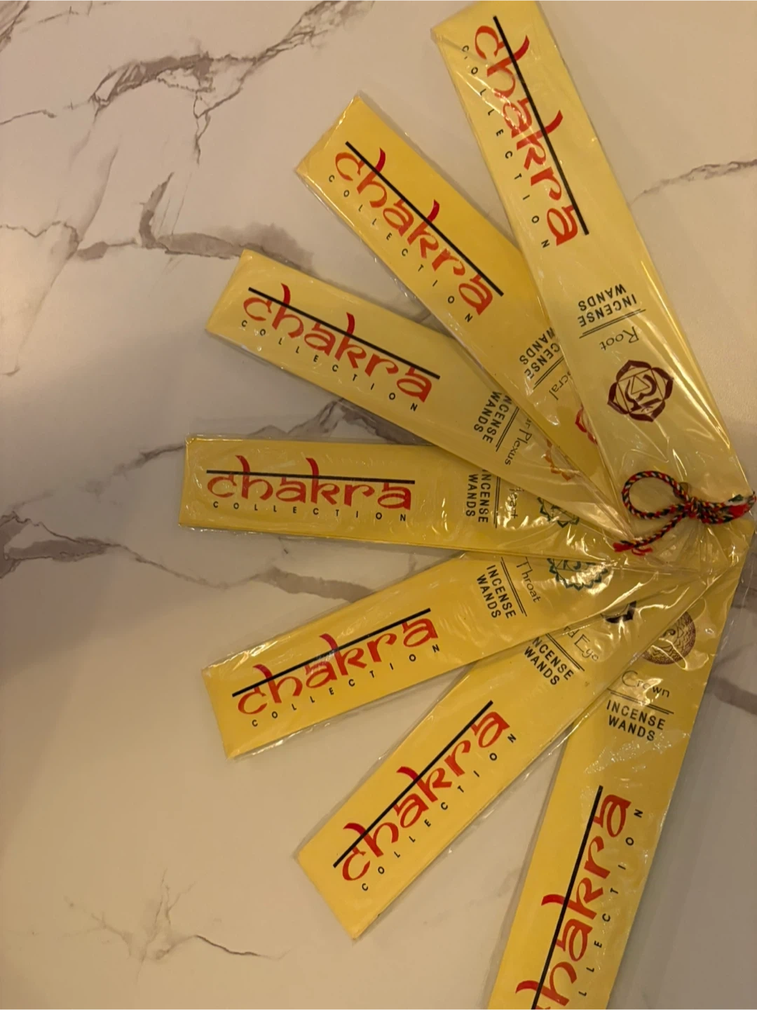 Selling a set of Chakra Collection incense wands. These incense wands are perfect for creating a calming and aromatic atmosphere in your home. They are free from any toxic substance and made with natural herbs, essential oils, flowers and resins. Each Chakra comes with approximately 10 wands.