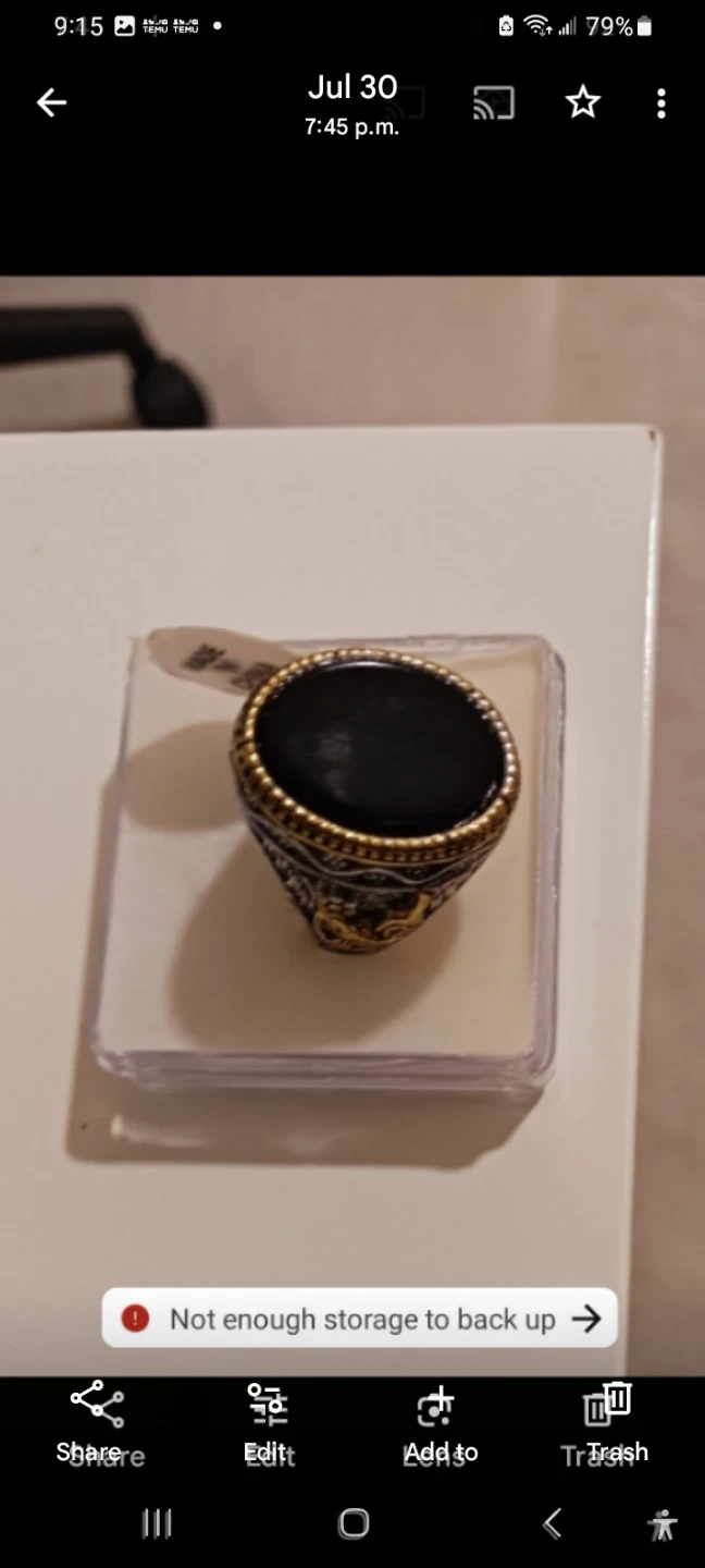 9Selling a men's ring with a black stone. It has a unique design and is in great condition! Perfect for adding a touch of style to any outfit