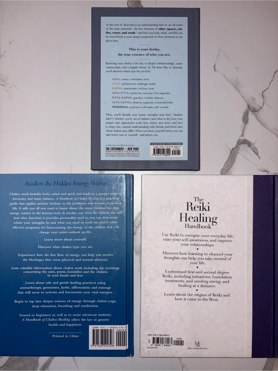 78Selling a set of three handbooks focused on healing and wellness: - The Seven Ways of Ayurveda by Sarah Kucera ($10) - A Handbook of Chakra Healing by Kalashatra Govinda ($5) - The Reiki Healing Handbook by Janet Green($5) Perfect for anyone interested in exploring these practices!
