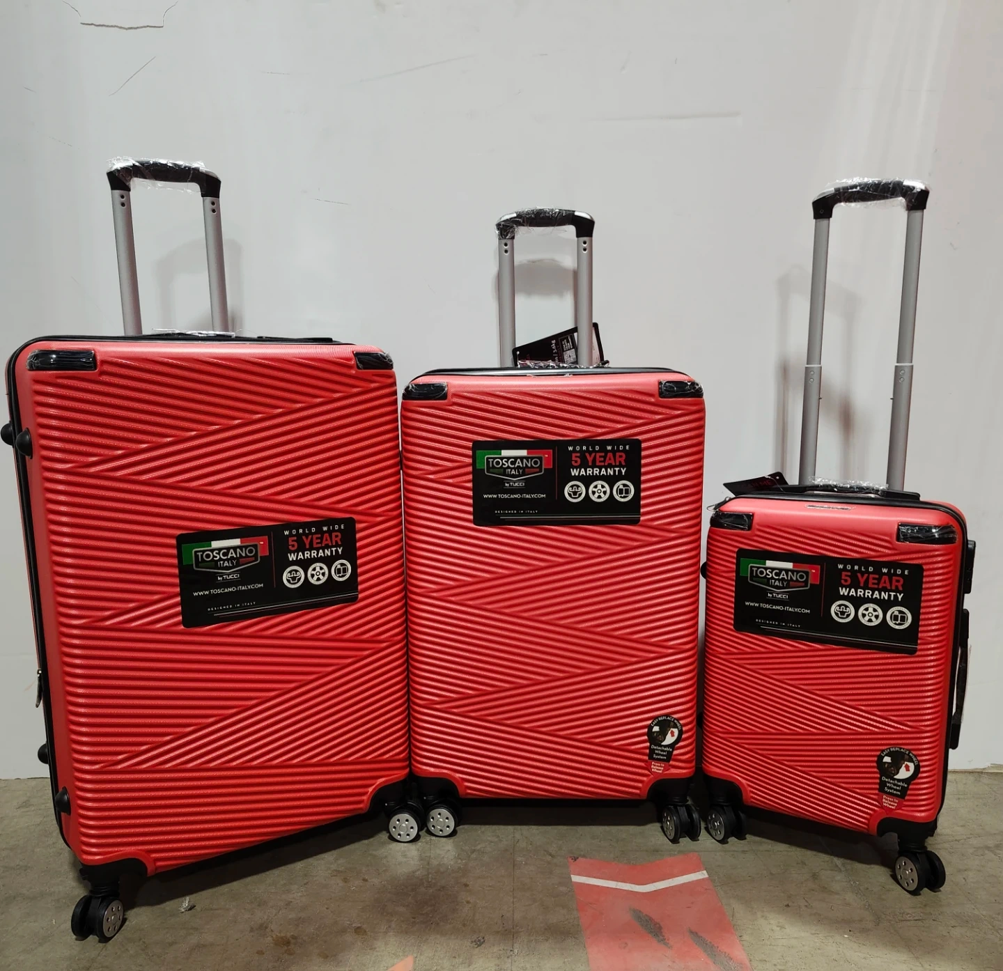 Toscano Hardside Luggage Large Medium Carry On Baggage On Clearance Sale Toscoano Brand Hardside Luggage 3 pcs set $175.00 30 " Large $70.00 28 " Medium $60.00 20 " Carry on $50.0 Highlights : Hardside Luggage Expandable Baggage Built in Combination Lock Double Removable wheels Black - Blue - Red - SilverSilver Final Clearance Sale