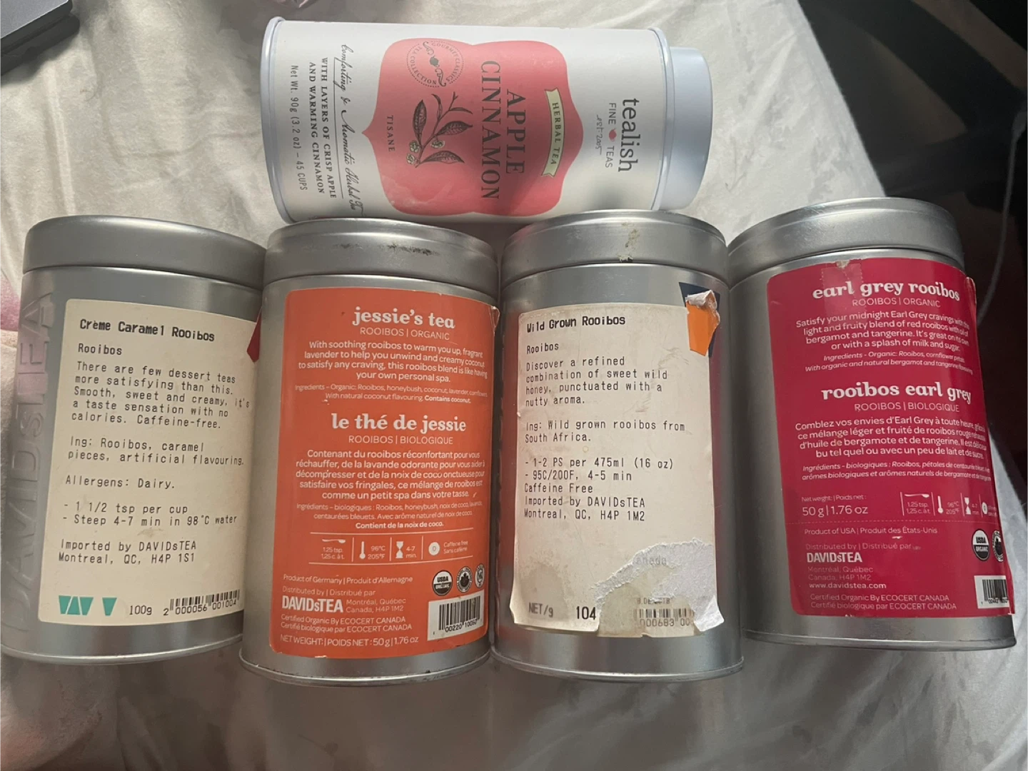 Selling a variety pack of DAVIDsTEA tea tins! Includes: