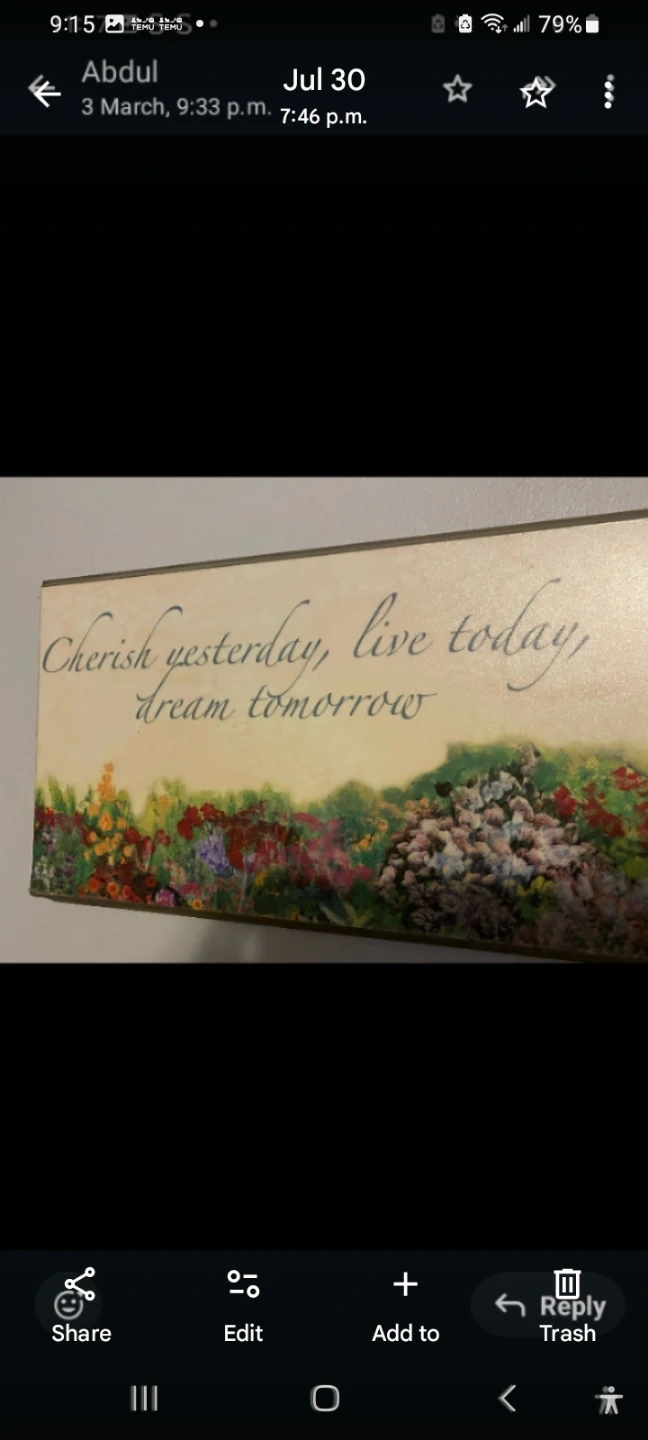 9Lovely piece of wall art featuring the quote "Cherish yesterday, live today, dream tomorrow" with a floral design
