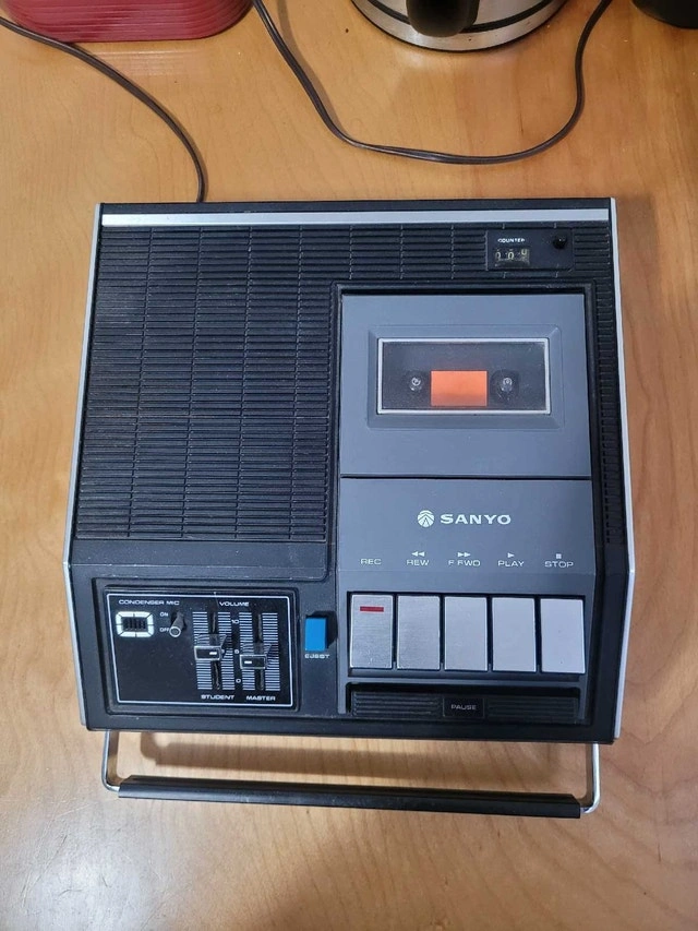 Sanyo cassette tape player recorder plays tapes good. The only issue with it is the rewind button is not working, needs some servicing. Everything else works on it: fast forward, stop, play, pause, record, eject and the volume buttons. Looking for cash only curbside pick up or meet up within Kitchener/Waterloo area. Text for fast reply