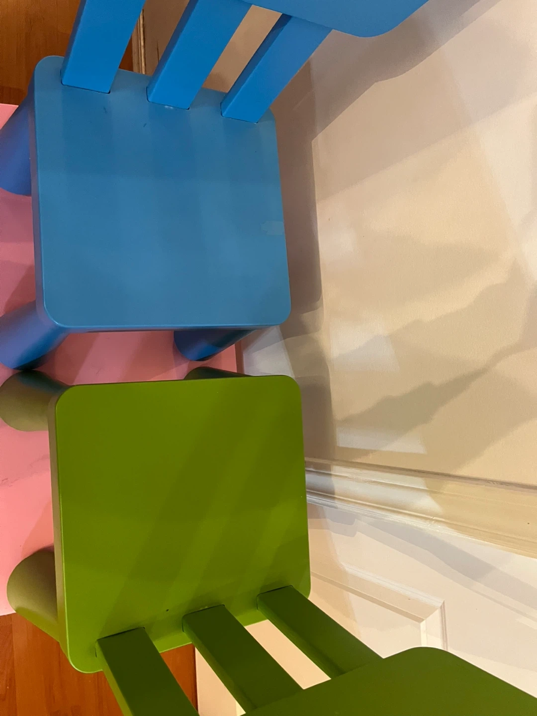 Selling a cute IKEA LÄTT children's table with two chairs! The table is pink, and the chairs are blue and green. Perfect for arts and crafts, snack time, or any fun activity for the little ones. There are some signs of use, but overall it's in good condition and ready for a new home!
