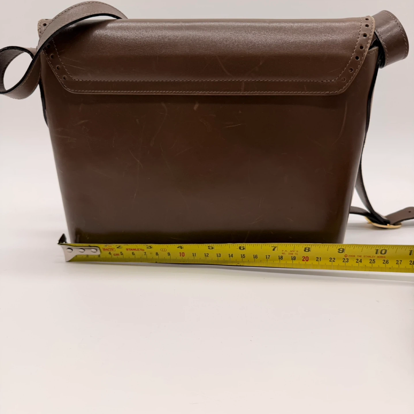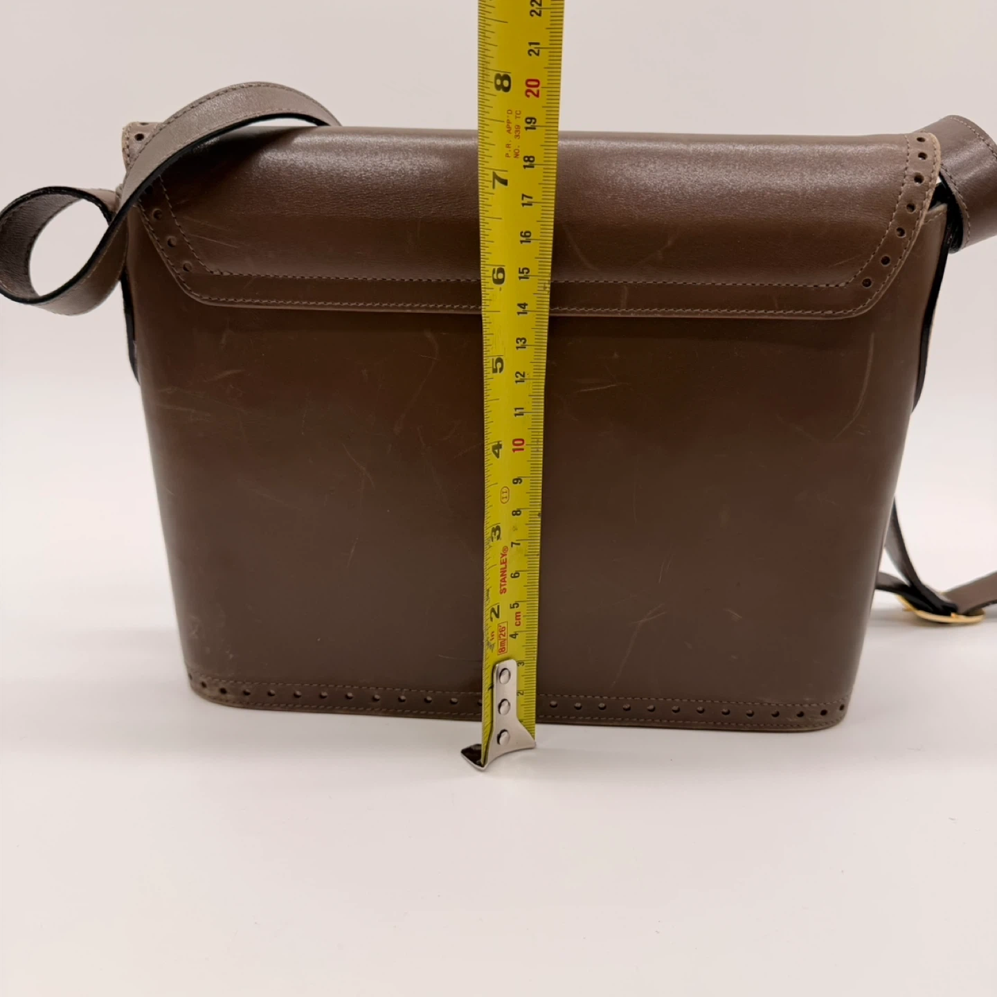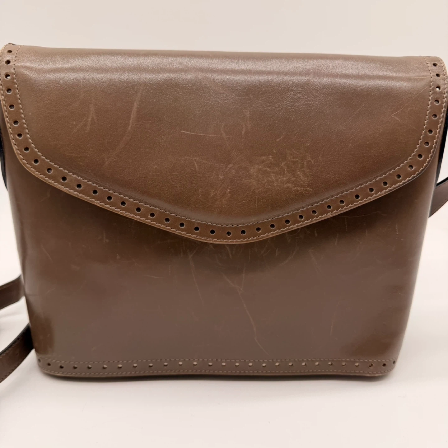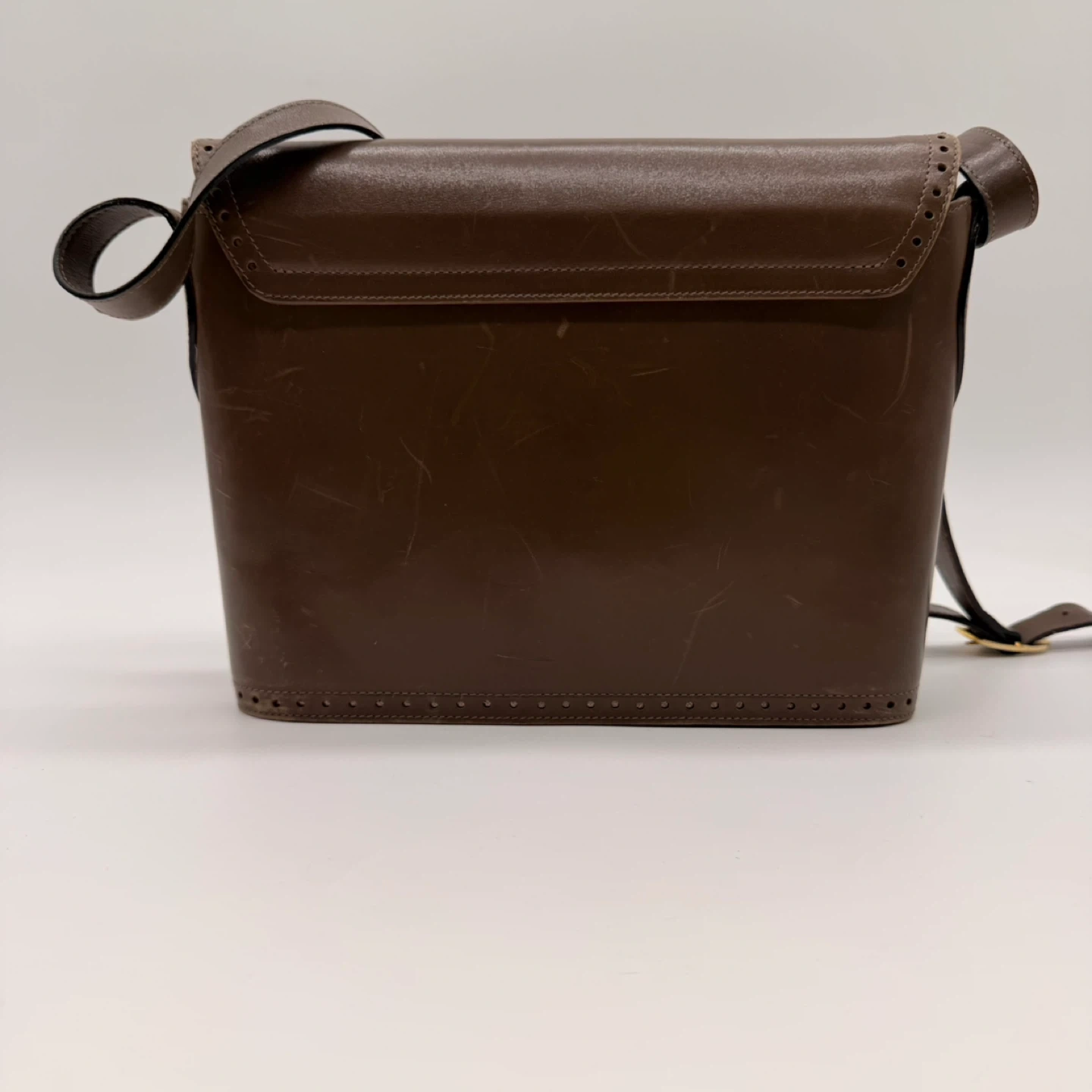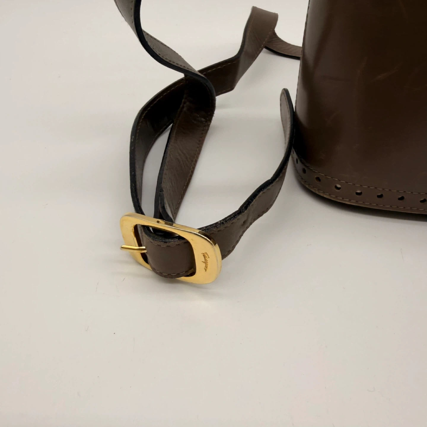 27Authentic Salvatore Ferragamo vintage leather crossbody bag. Made in Italy. Classic brown leather with gold-tone hardware. Condition: The bag is vintage and shows scratches and signs of wear on the exterior (see photos). Interior is clean and strap is in good condition. No rips or major damage. Approx. size: 23 cm wide × 19 cm tall × 9 cm deep. Adjustable strap. 📍 Pickup: North York 🚗 Delivery available for extra 283