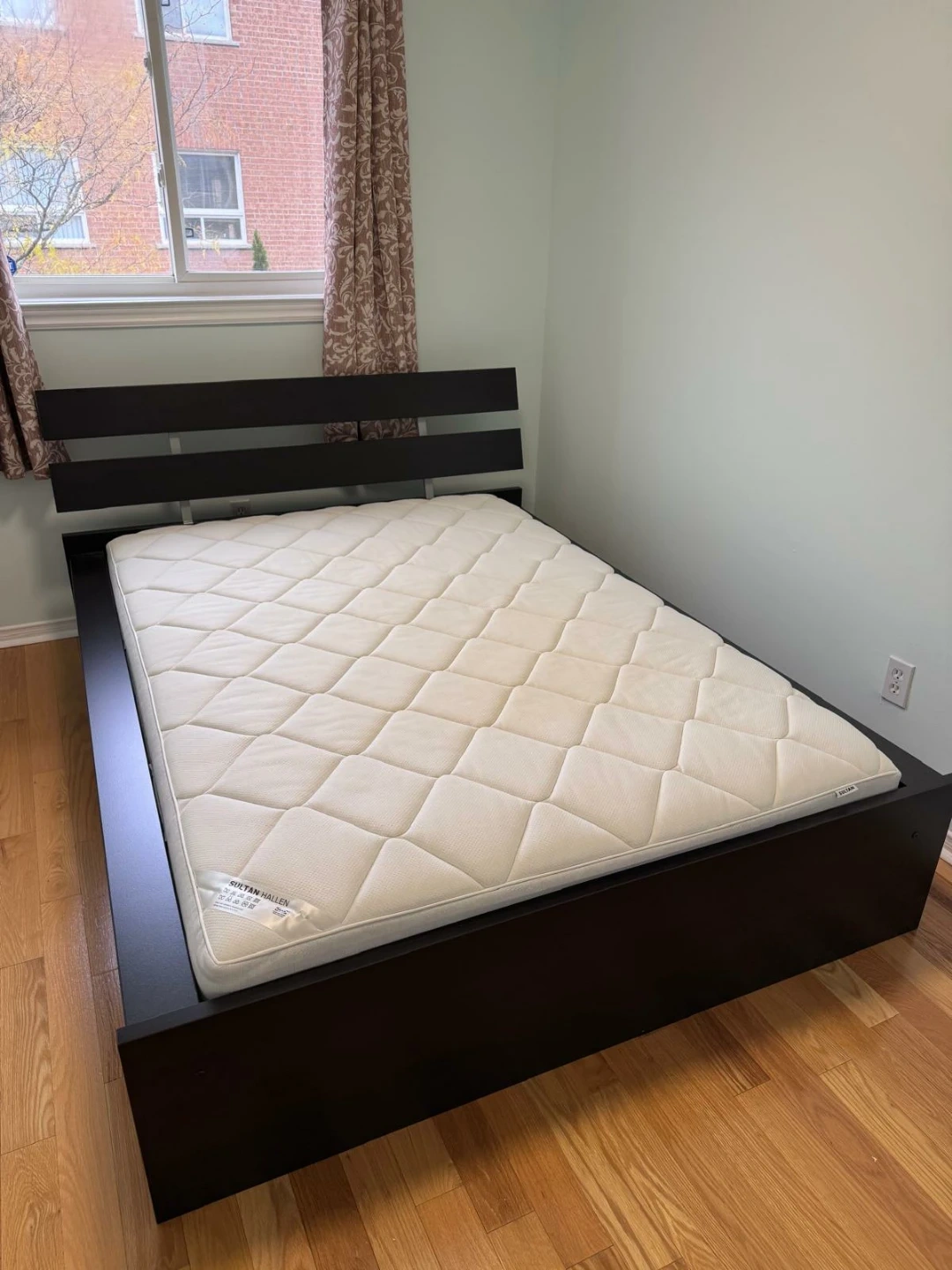 Selling an IKEA Sultan Hallen mattress and bed frame combo for double bed! It's a sturdy and reliable set, perfect for a good night's sleep. The mattress is comfy, and the bed frame offers great support. Ready for pick-up!