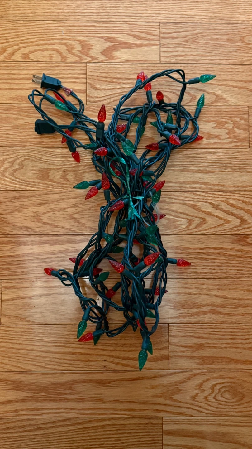 Selling a string of Christmas lights with red and green bulbs. They're in good condition and ready to brighten up your holiday season