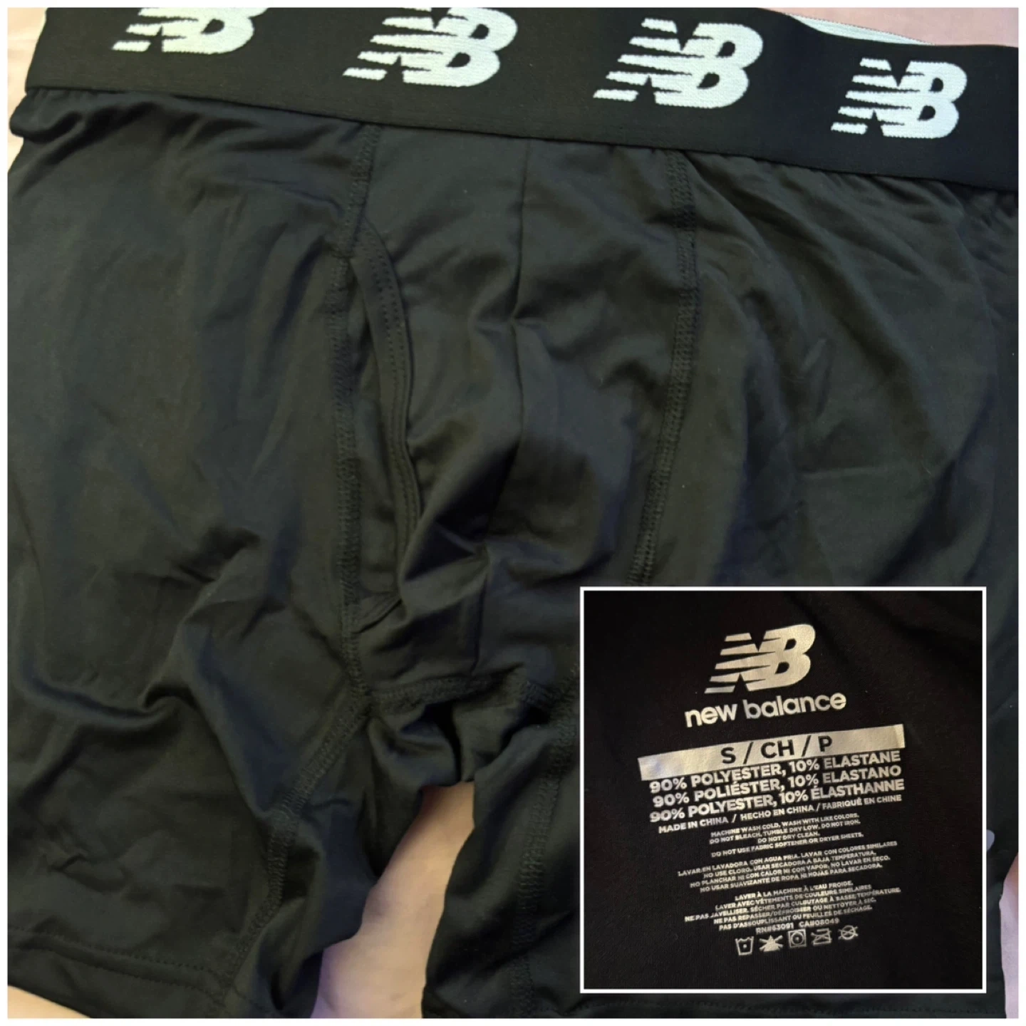 For free is a brand new pair of men's black New Balance boxer briefs in size small. They are made from 90% polyester and 10% elastane.