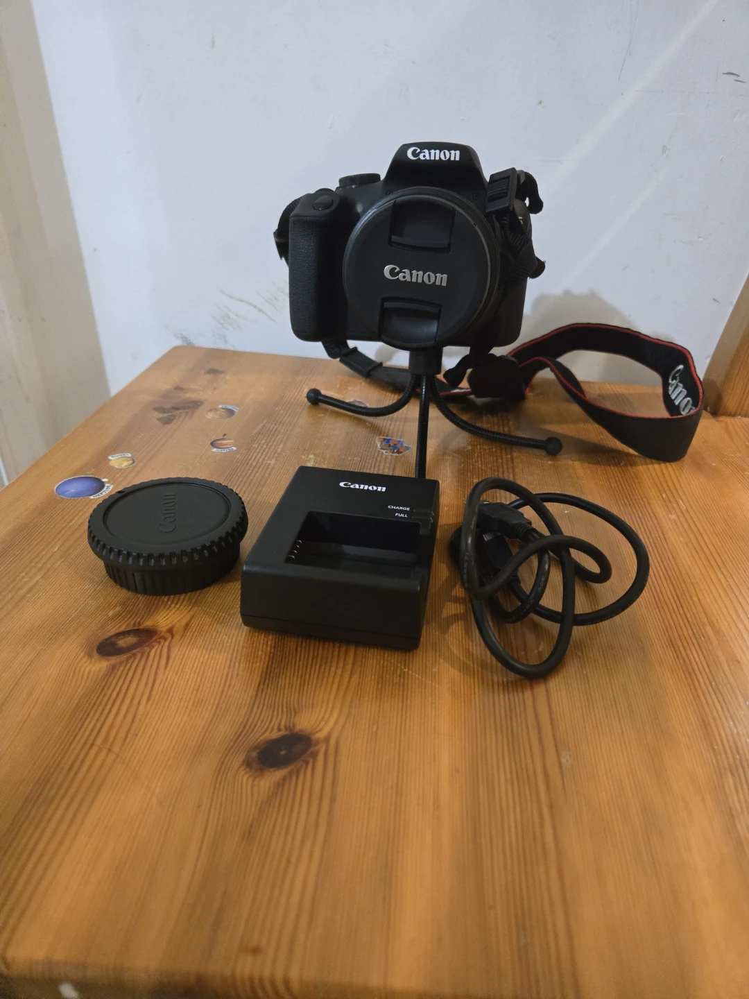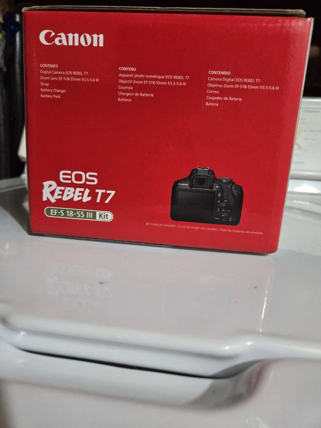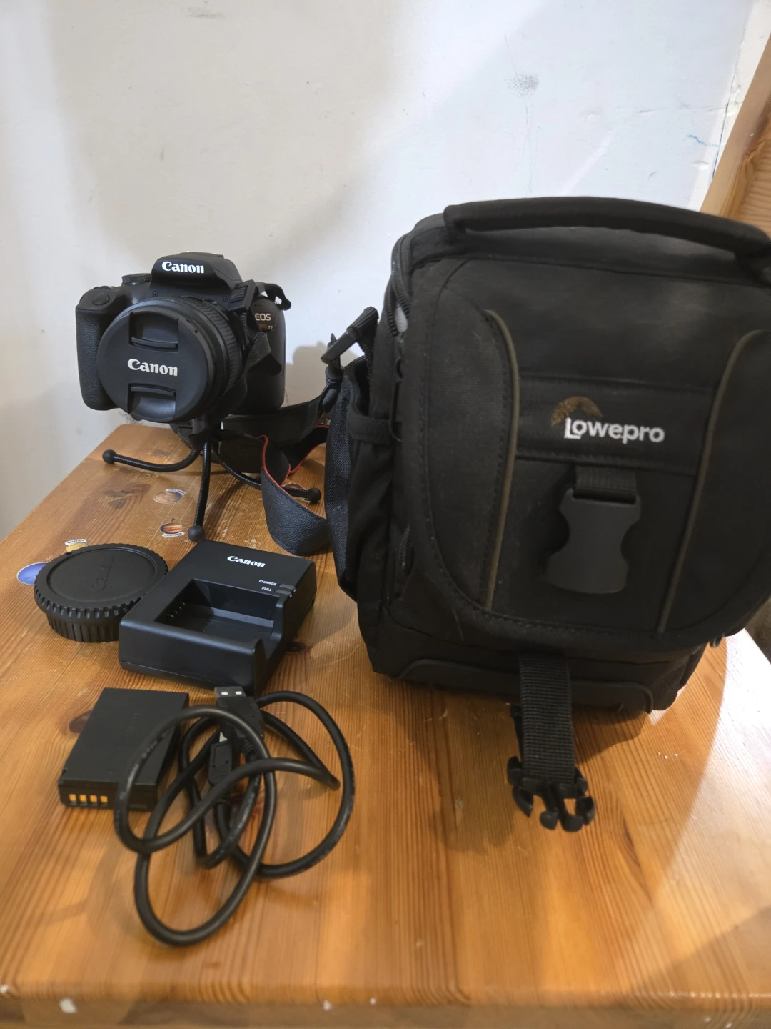 Selling a Canon EOS Rebel T7. It comes with the EF-S18-55mm f/3.5-5.6 III zoom lens, strap, lens cap, battery charger, and battery pack. The camera is in excellent condition and includes the original box. Also comes with a bag, a mini tripod, and a camera USB cable. This model is good for beginners to experts.