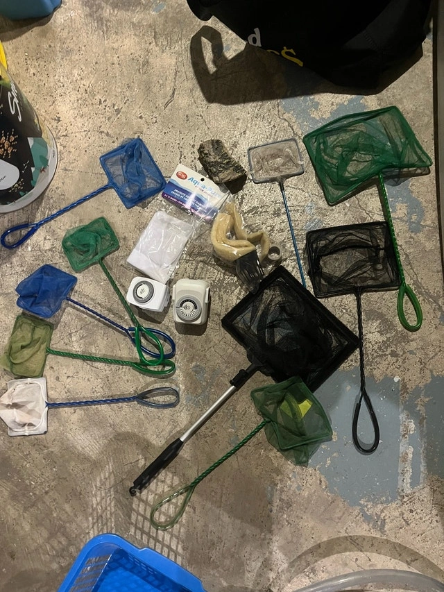 Clearing out some used aquarium supplies! This lot includes various sized fish nets, some new media bag and other accessories. Perfect for anyone setting up or maintaining a fish tank. Condition varies but all items are functional. Each item is $2 or all for $25. Cash accepted.