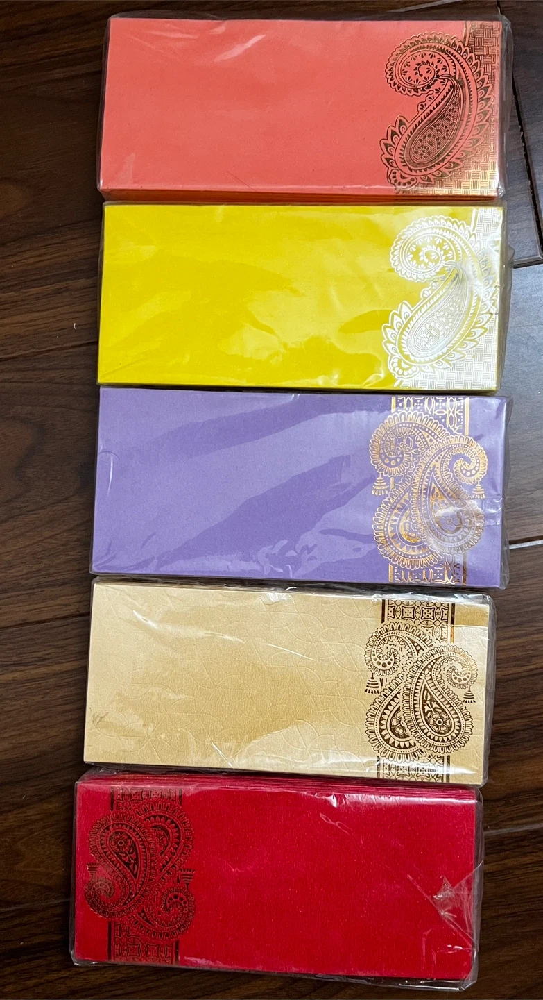decorative gift envelopes in assorted colours. They feature a beautiful paisley design in gold. Perfect for gifting money in style!
