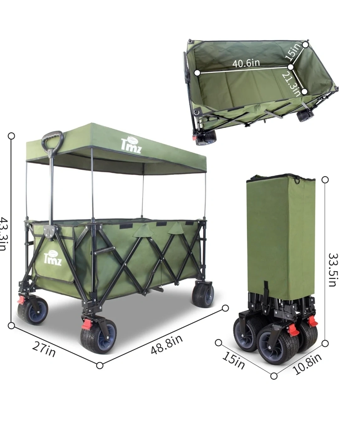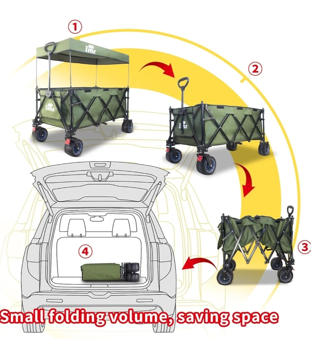 TMZ Collapsible Wagon 445L XL Outdoor Utility Cart | All-Terrain