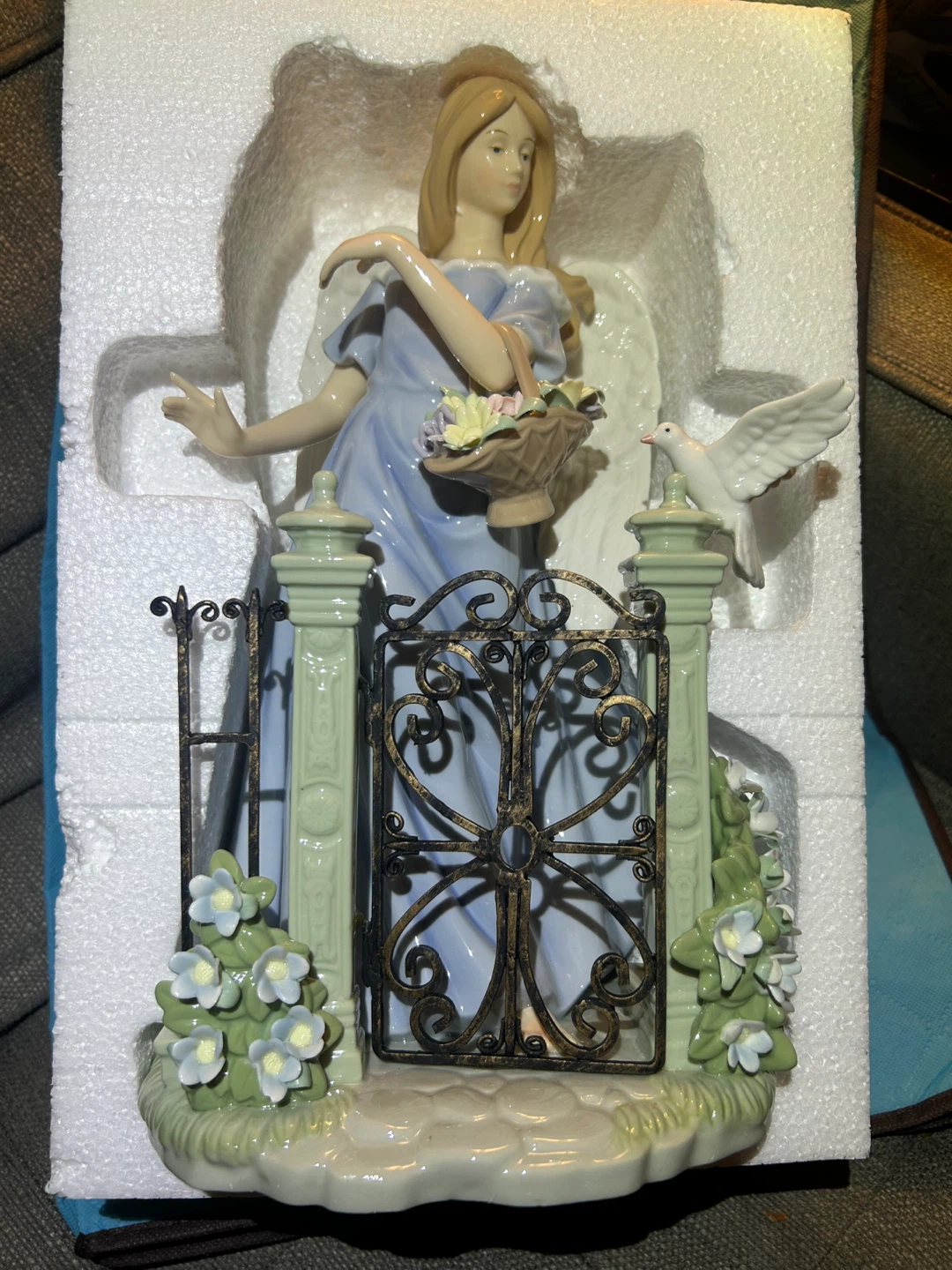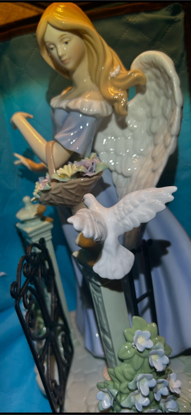 Vintage Angel Figurine with Dove and Flowers