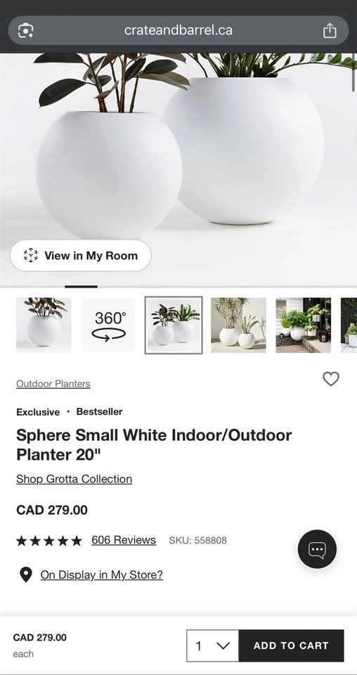 Crate & Barrel Sphere Planter – Small (White)