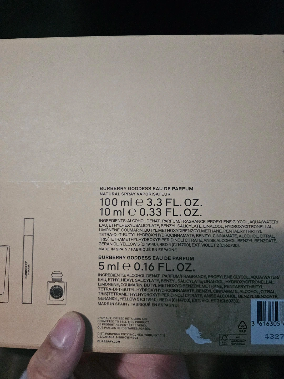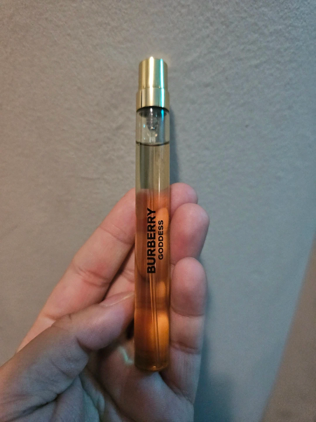 81Selling travel size of Burberry Goddess Eau de Parfum That came in a set with full bottle. Comes in original box. Perfect for trying out this fragrance before committing to a full bottle. 10 ml vaporizer 5ml miniature bottle