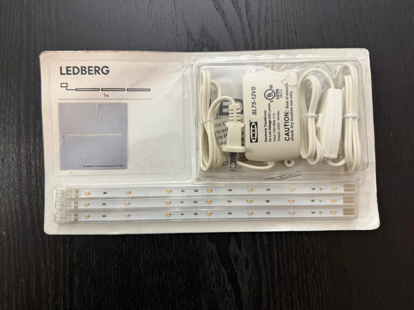 Selling a brand new IKEA LEDBERG LED strip lighting set, still sealed in its original packaging! It's 1.5 meters (4' 11") long and includes everything you need. Perfect for adding some extra light under cabinets or shelves