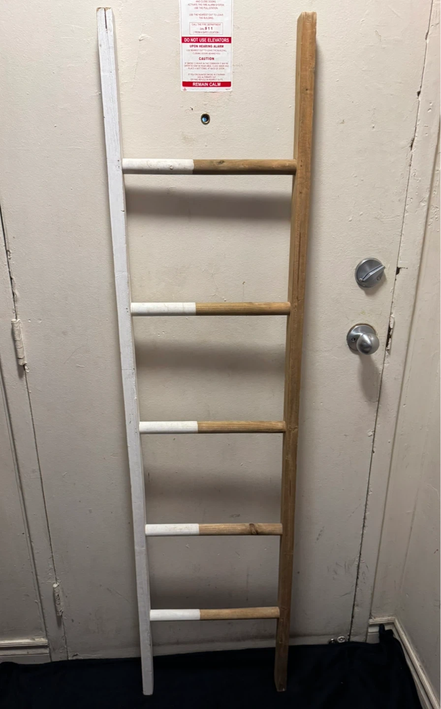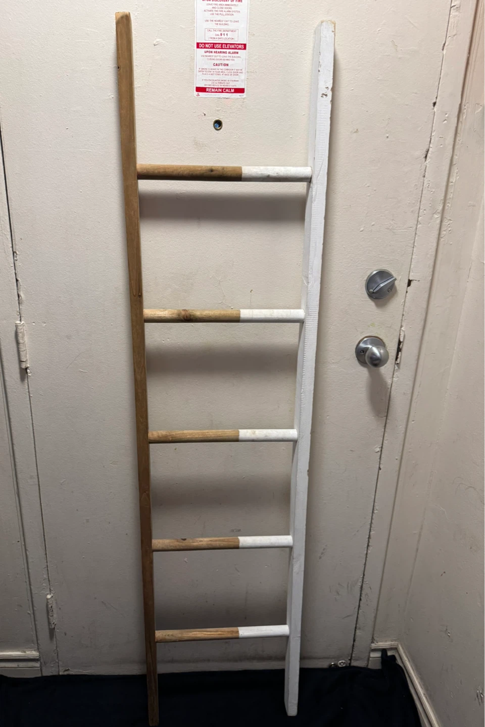Selling a decorative ladder, perfect for adding a rustic touch to your home decor. It features a combination of white and natural wood tones. Great for displaying blankets or towels, or just as a unique accent piece