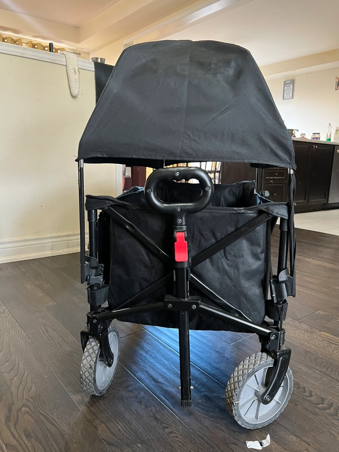 Selling a gently used Ozark Trail folding wagon with a canopy. It's perfect for trips to the park, beach, or for carrying groceries. Folds up easily for storage and transport. The canopy provides shade on sunny days. It's in great shape and ready for its next adventure!