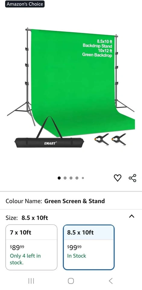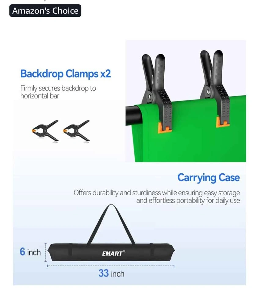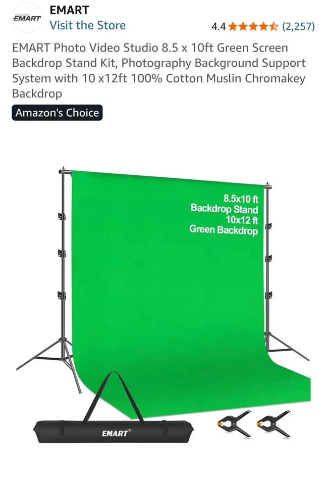 EMART Photo Video Studio 8.5 x 10ft Green Screen Backdrop Stand Kit.