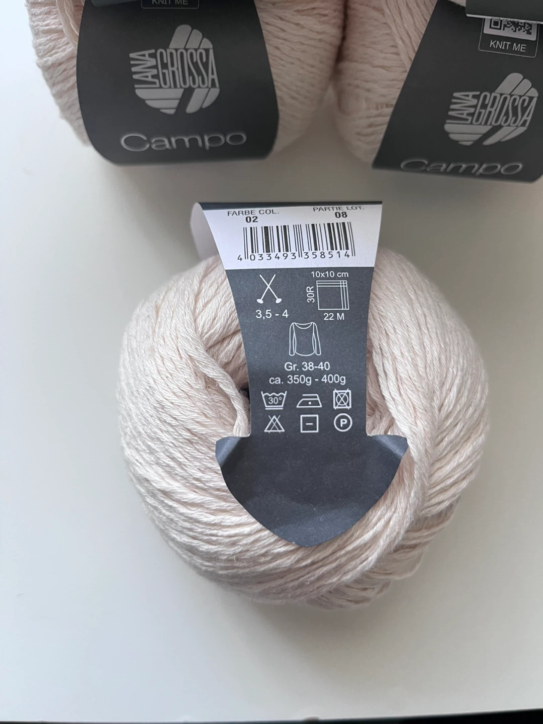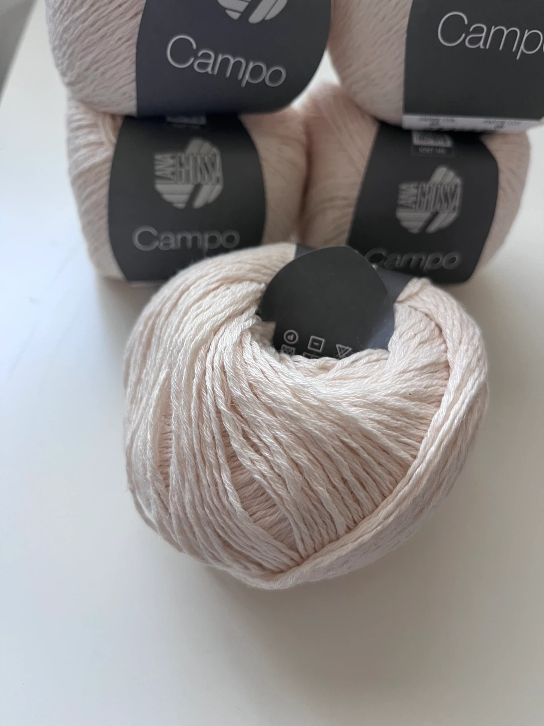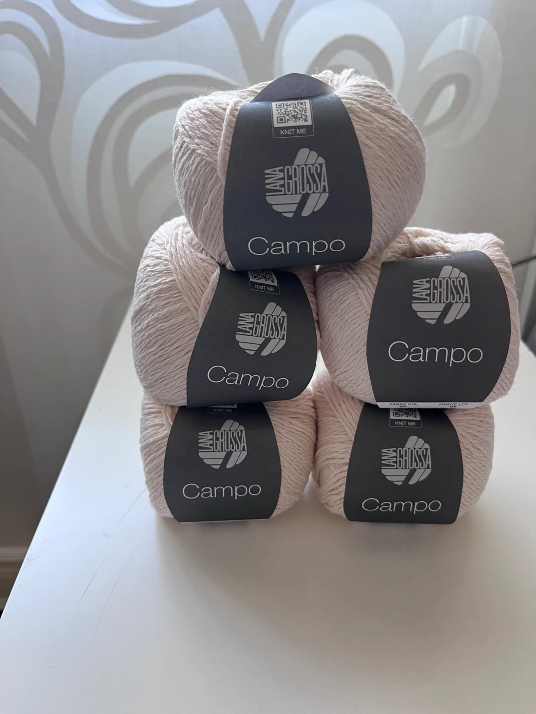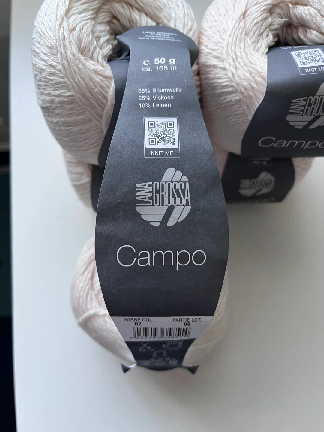 Selling some Lana Grossa Campo yarn. It's a lovely blend of 65% Baumwolle (cotton), 25% Viskose (viscose), and 10% Leinen (linen). Each ball is 50g and approximately 165m in length. Recommended needle size is 3.5 - 4 mm. Perfect for your next knitting project!