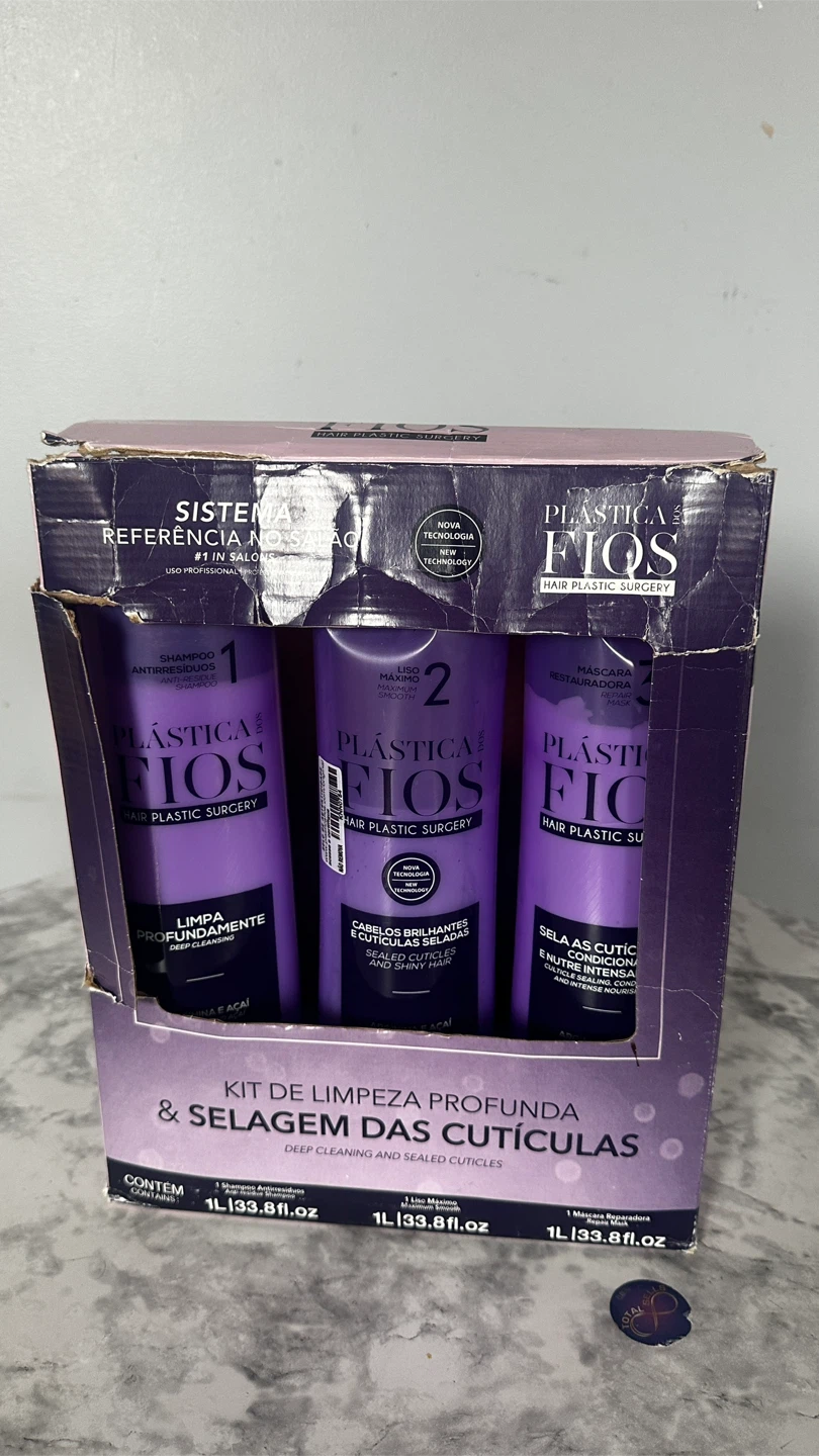 Selling a Plástica Fios Hair Plastic Surgery Kit. This deep cleaning and sealed cuticles kit includes: