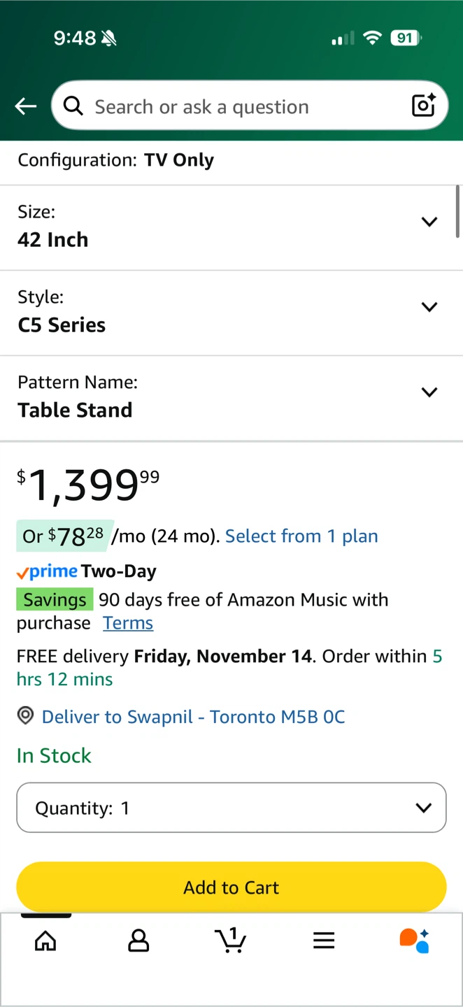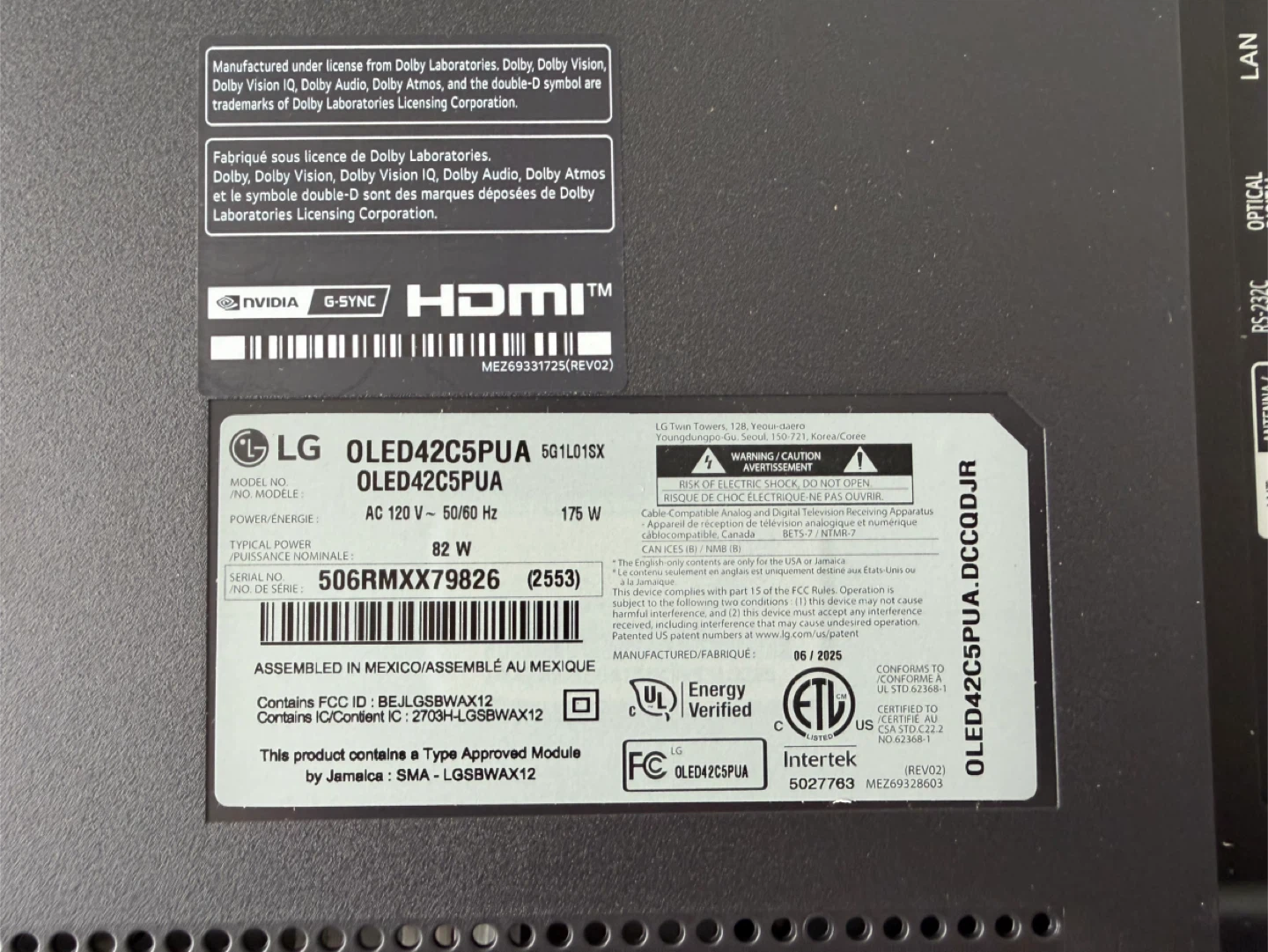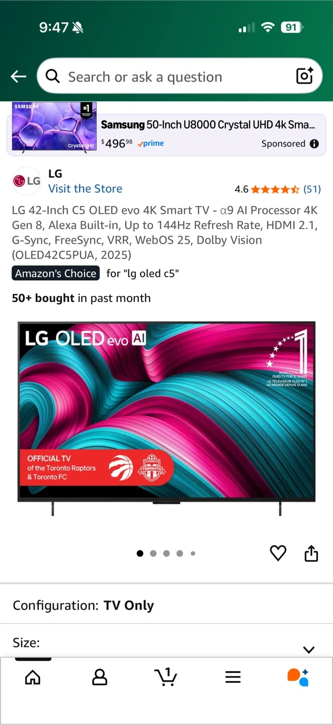 - LG OLED C5 42" 4K OLED evo AI TV (model OLED42C5PUA, 2025 build)