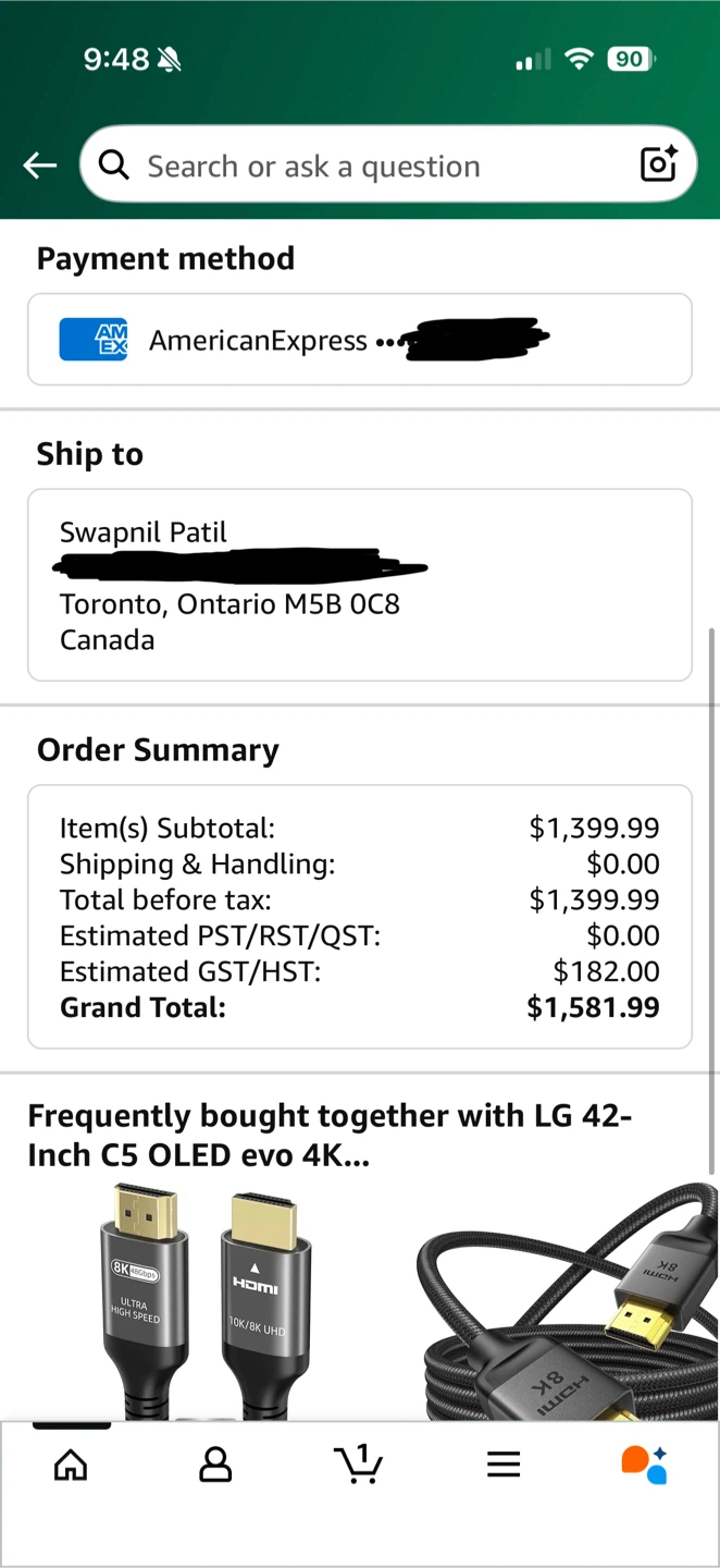 Ordered from Amazon. Paid: $1582.