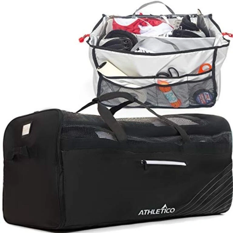 Selling an Athletico hockey bag brand new It's black and spacious, perfect for carrying all your gear to the rink. The bag has a separate compartment on top for organizing smaller items, and the main compartment is large enough for skates, pads, and a helmet. Great for keeping everything together and easy to transport!