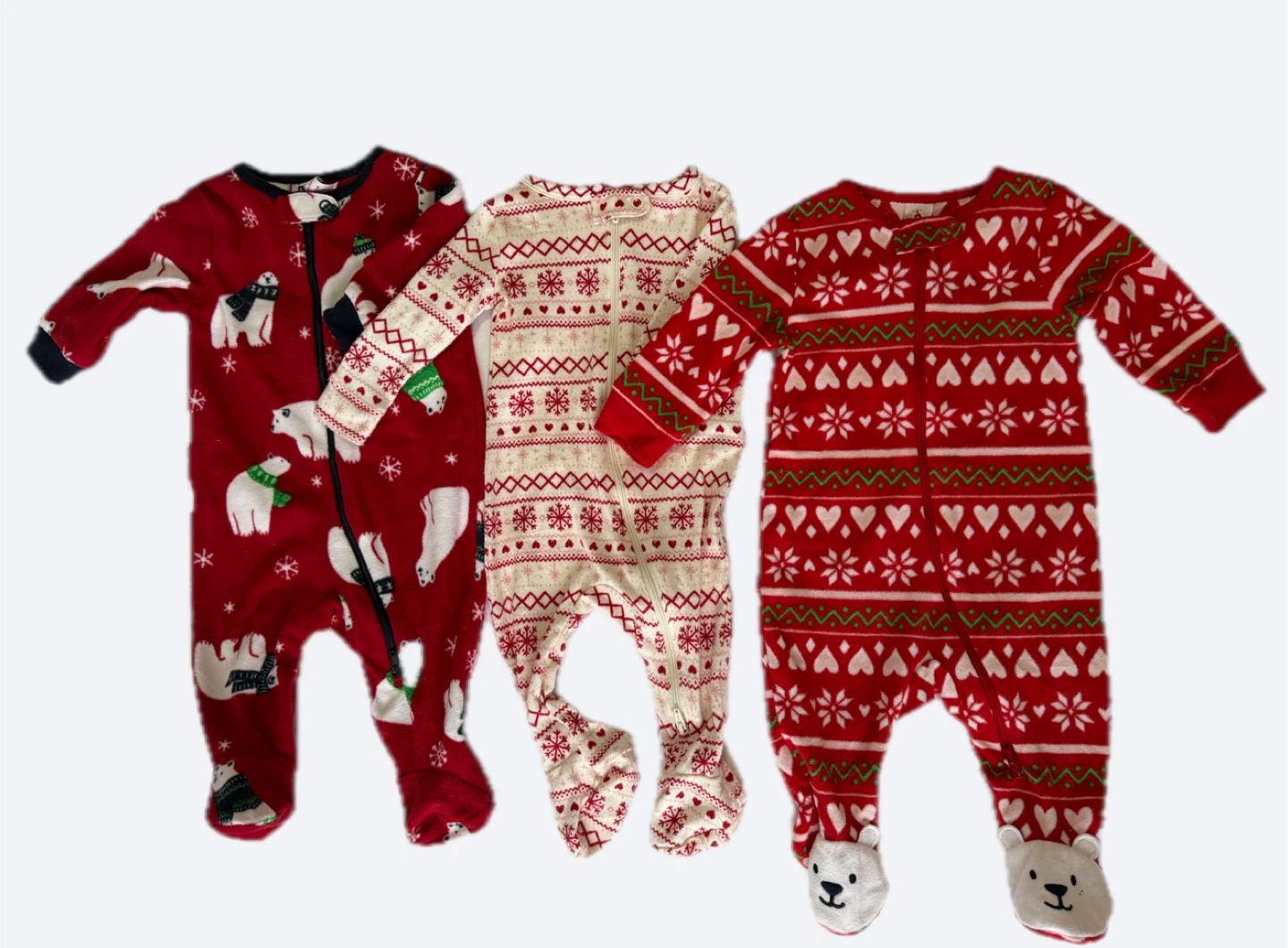 Here are three adorable footed pajamas for your little one! They are perfect for the holiday season, featuring festive patterns and cozy designs. All are in great condition and ready for a new home!