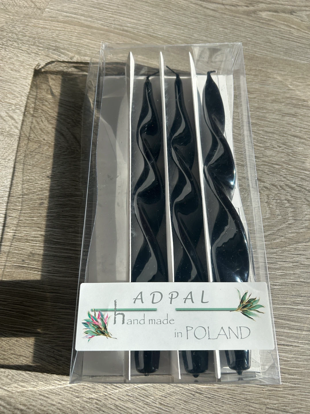 Selling a set of beautiful black twisted candles from Adpal, hand made in Poland! They come in their original packaging and are in excellent condition. These candles will add a touch of elegance to any room