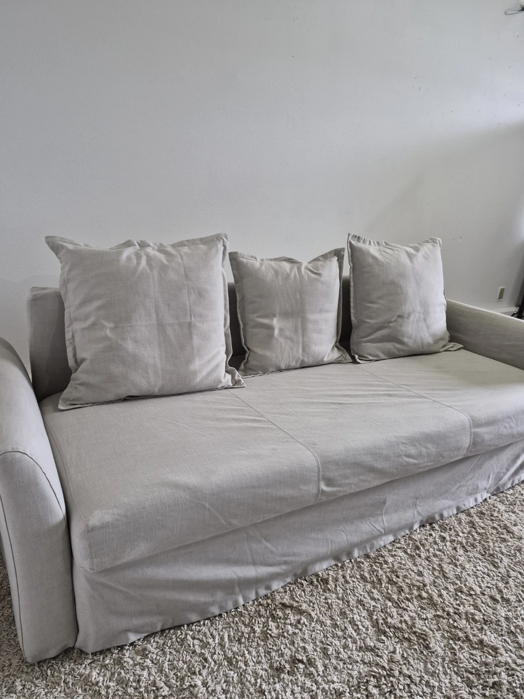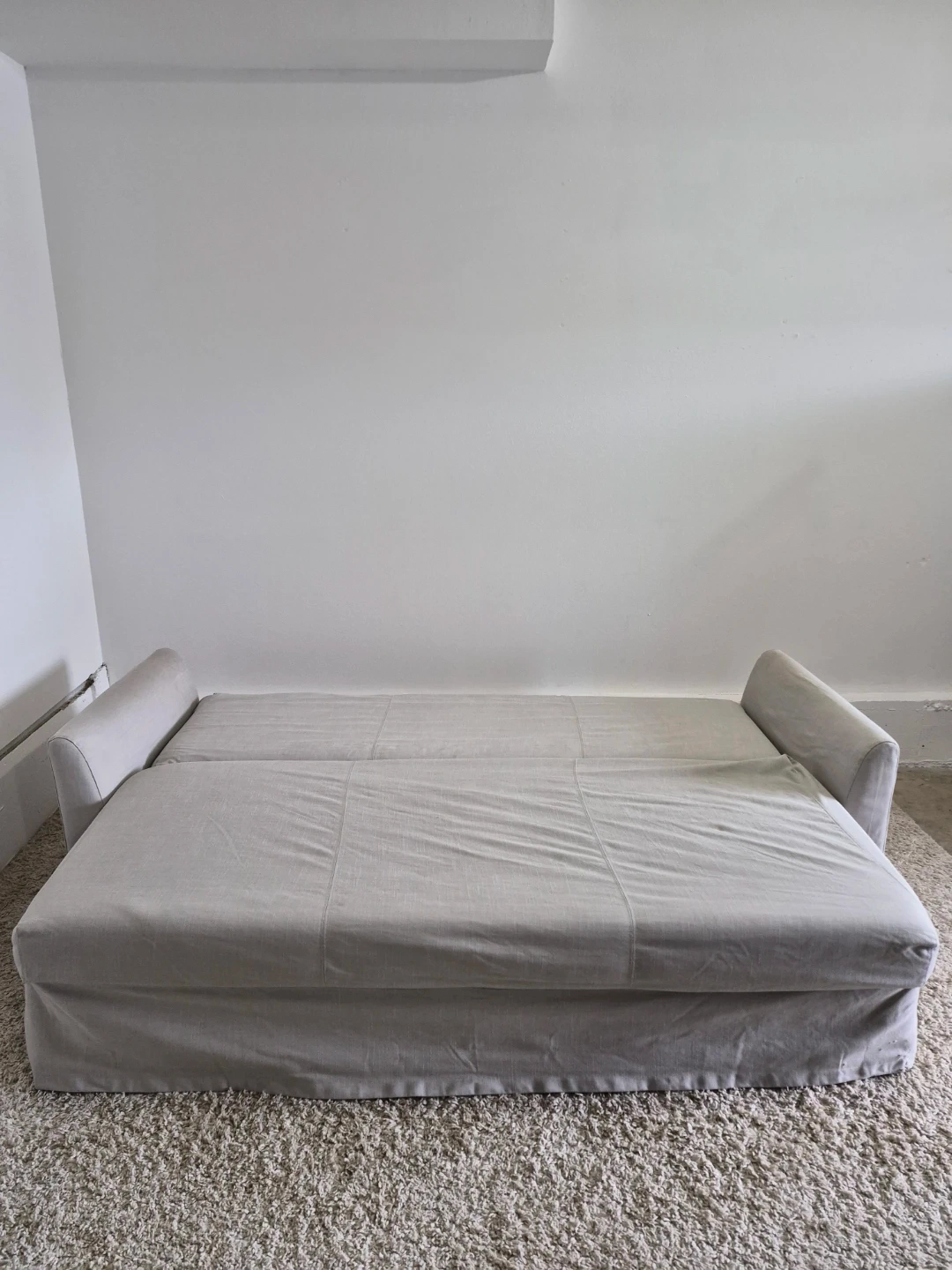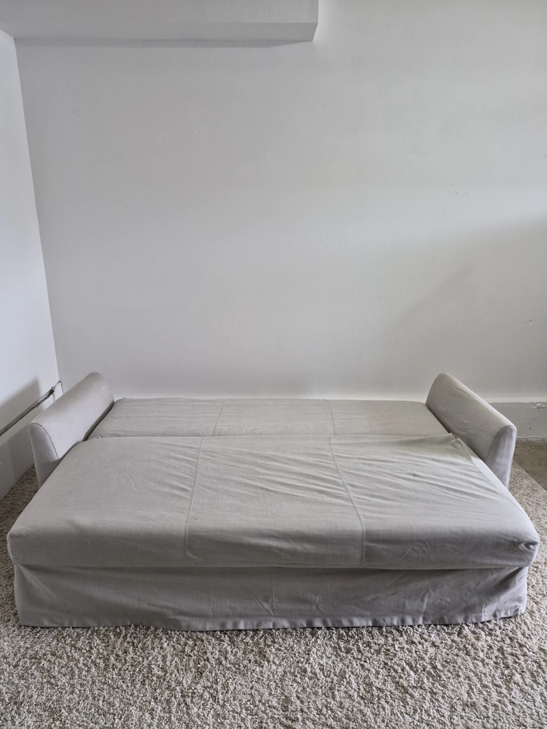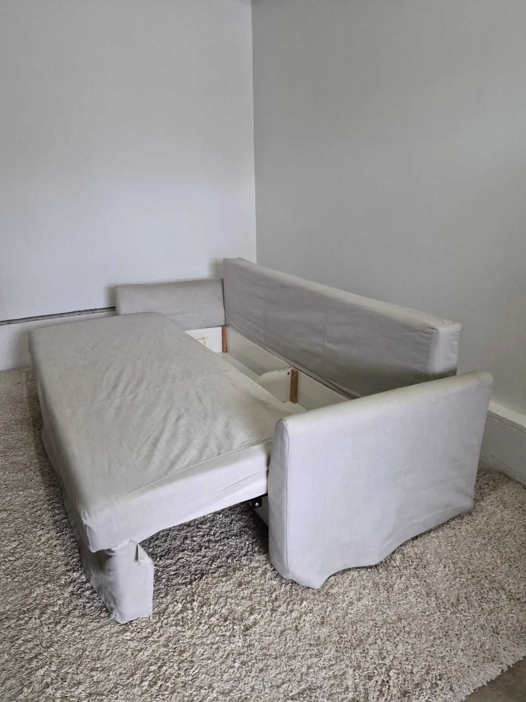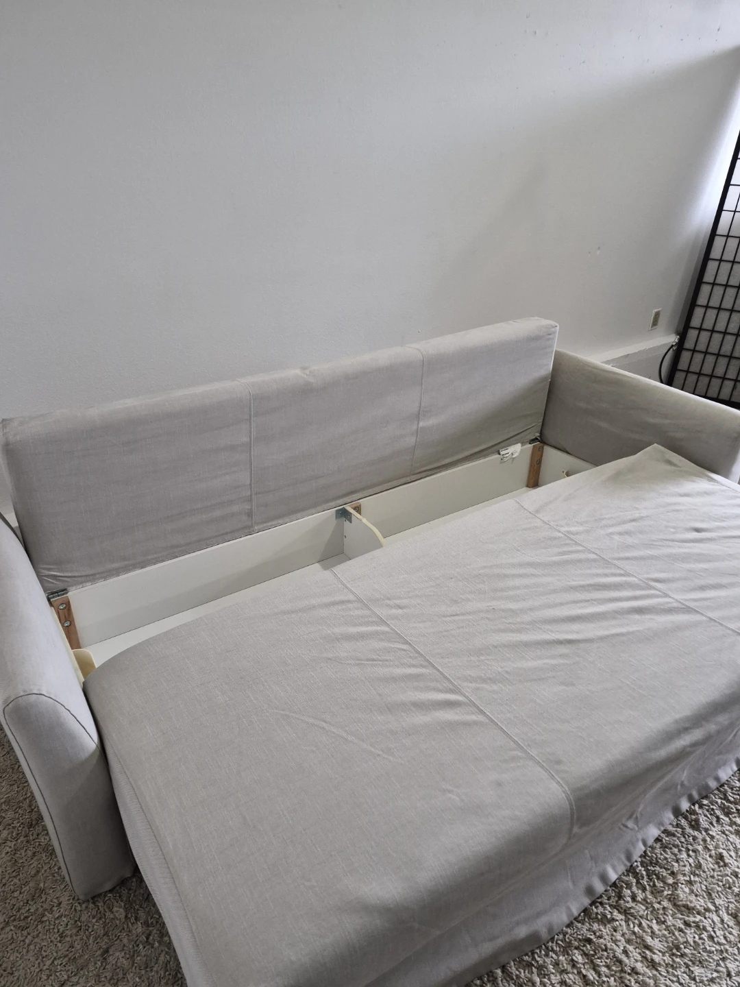 Selling our families Ikea Friheten 3 Seater Pullout Sofabed with storage underneath! It was used in our spare room and therefore hasnt been used that much. It is in good condition and I also cleaned it. The dimensions are in the last photo. I can deliver in Metro Vancouver.