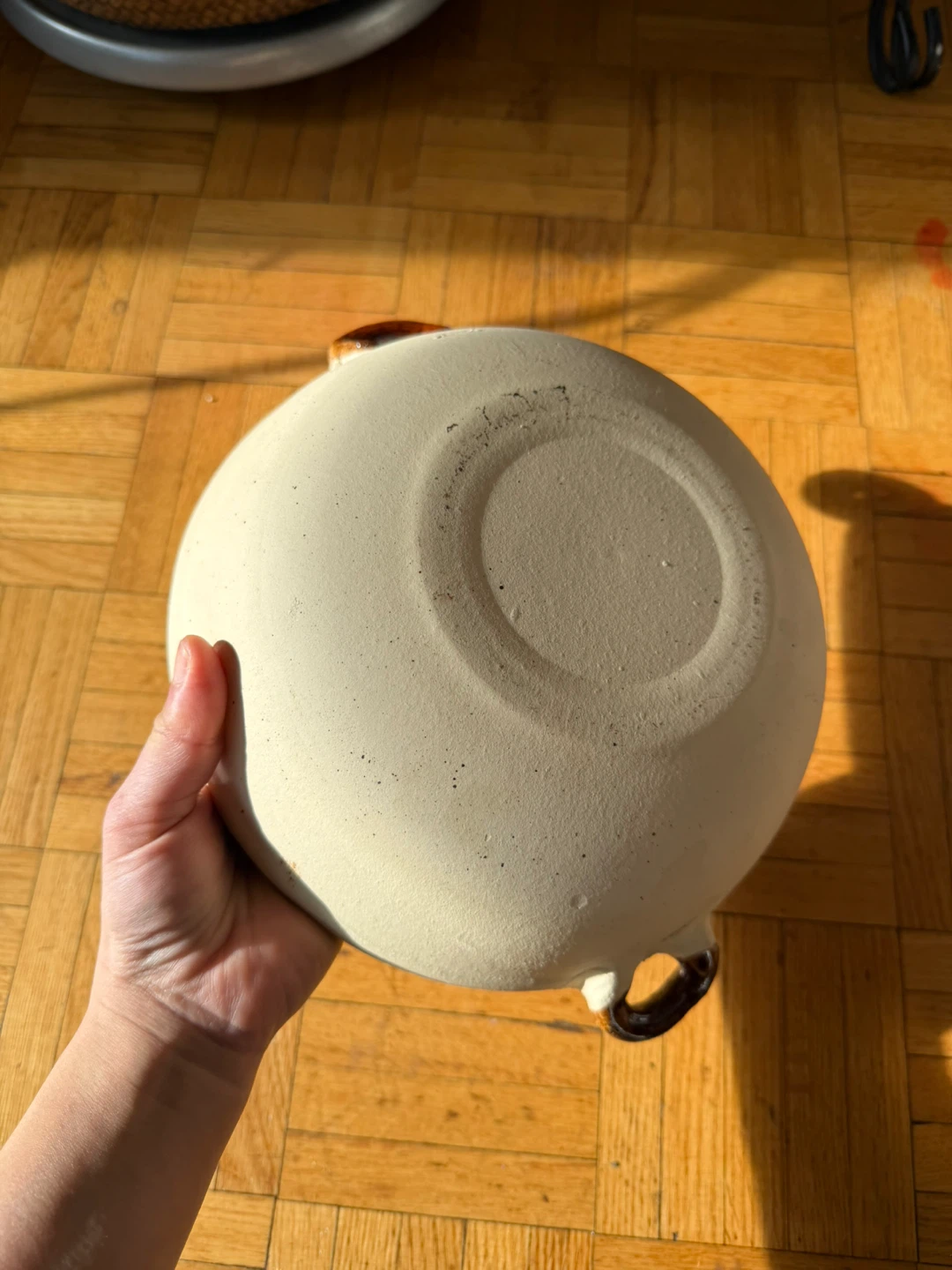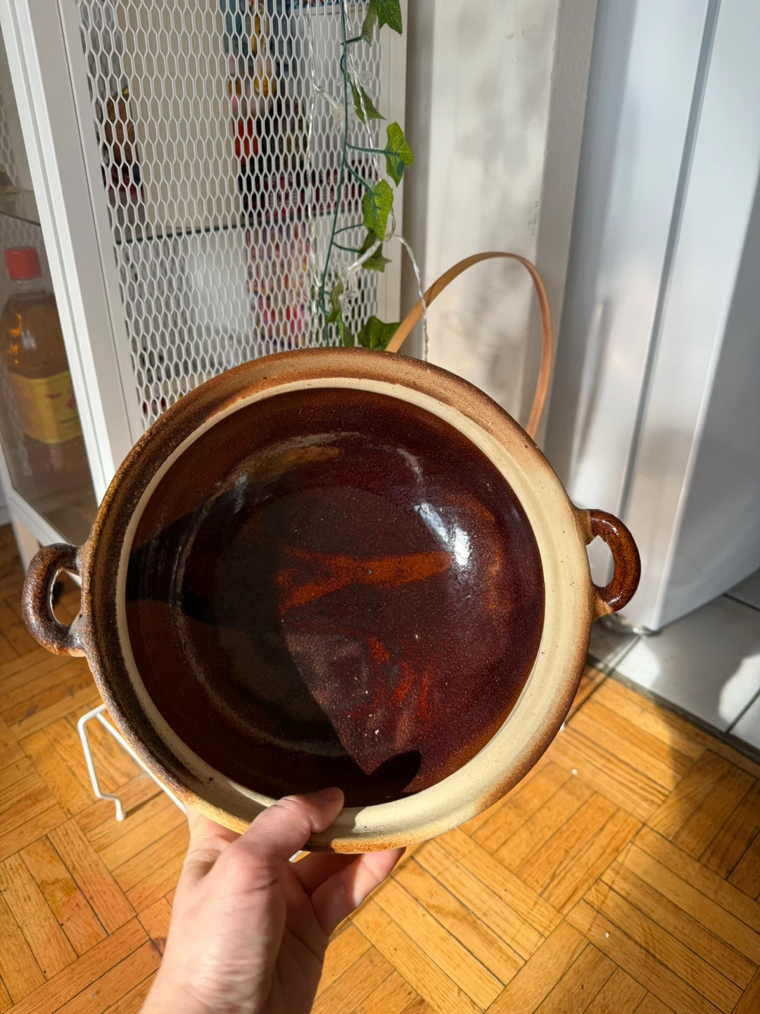 Selling a lovely vintage ceramic casserole dish! It's in great shape and ready for your next culinary creation. The dish features a beautiful brown glaze on the inside and a cream-coloured exterior. Perfect for baking and serving your favourite dishes