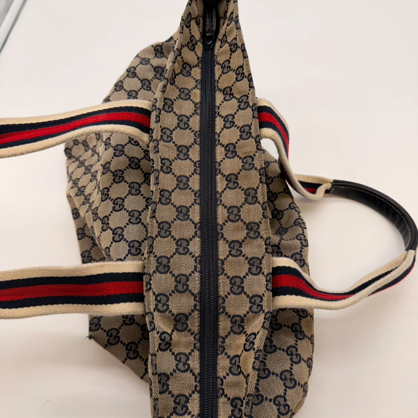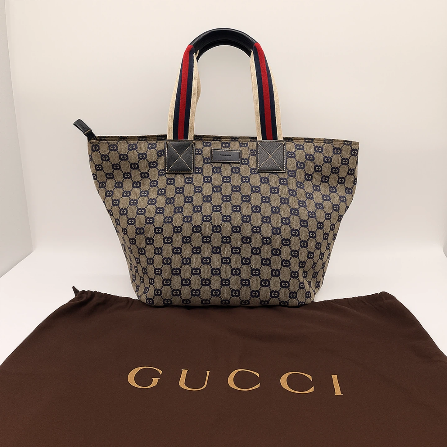 27Authentic Gucci GG Canvas Tote Bag in beige/blue with red/blue web straps. Comes with the original Gucci dust bag. Condition: • Some corner wear (see photos) • Light signs of use • Interior clean • Zipper works perfectly • Handles in great shape Size: Approx. 36 cm × 36 cm Pickup / Delivery: 📍 Pickup in North York 🚗 Delivery available for an extra fee