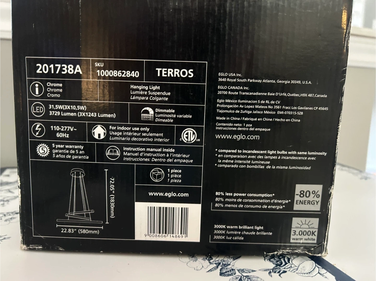 $95 Off! – EGLO DNA Linear LED Pendant – Never Installed – $125