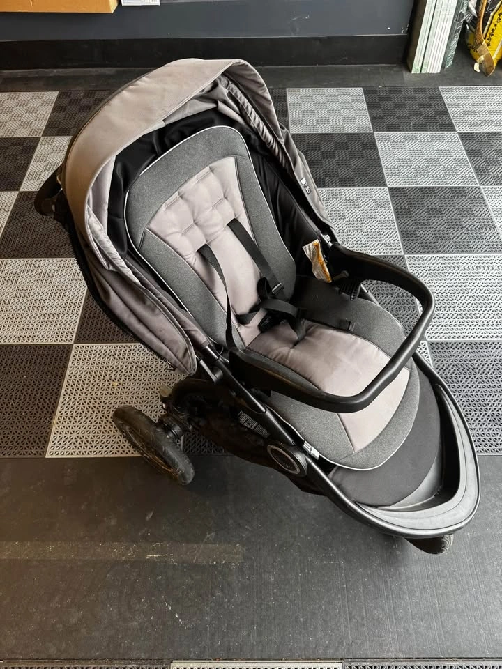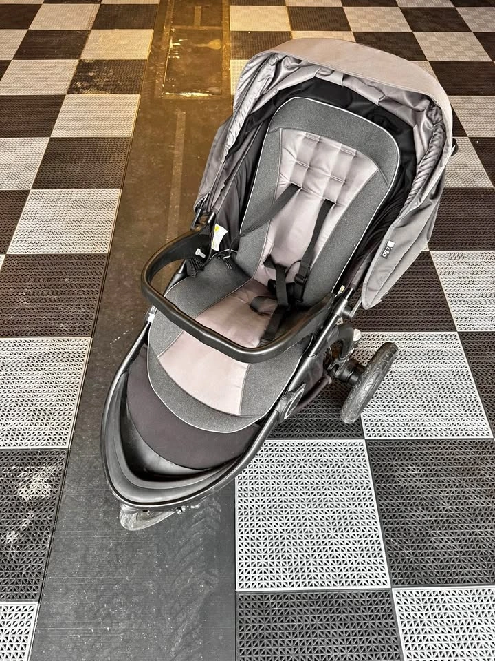 Works with the Graco click and connect system - if you have the Graco click and connect infant car seat, the car seat will click and attach to the stroller, no need to transfer baby out of the infant seat. Once baby is big enough, stroller has the regular stroller seat. Adjustable handles, shocks, locking front wheel, and brakes - perfect for running, jogging, and walking. Works great on uneven surfaces. The cover also unzips but has mesh to keep baby protected, once unzipped, most of baby is covered. You also can still use the shade cover with the infant car seat attached