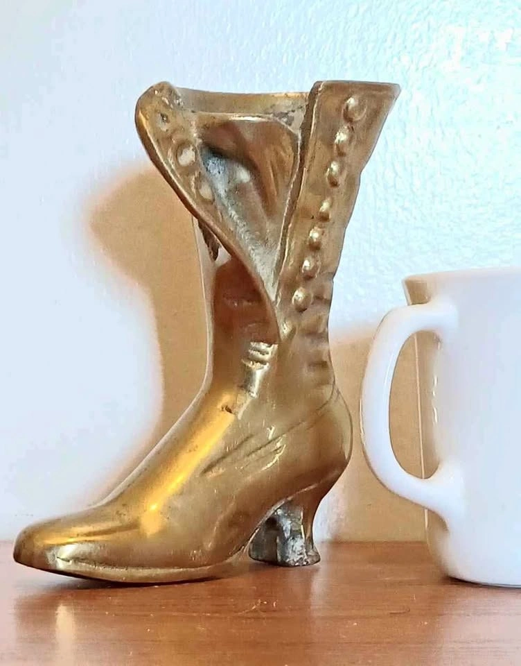 65Vintage 1960's, Very Rare , Hand Crafted , Heavy , Victorian Heel Boot Decorative , Household ,Brass Vase Mug For Size Reference Please check out my other rare collectibles!