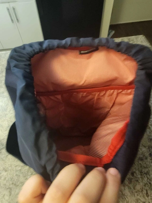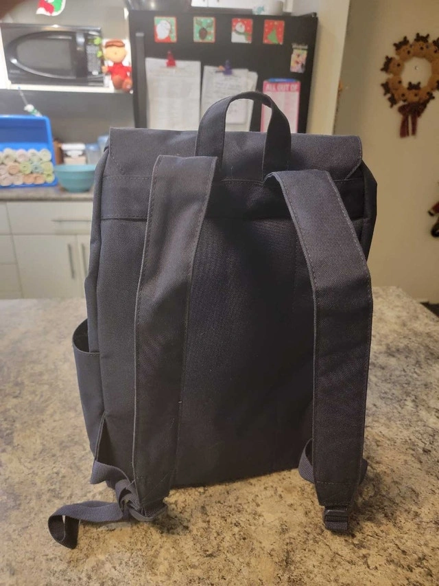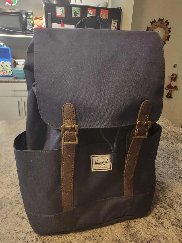 Herschel navy blue backpack, lightly used. Drawstring closure in addition to two snaps. Bought a couple years ago from Indigo and it served me well but I just needed a bigger one. Pickup only in Sherwood Park!
