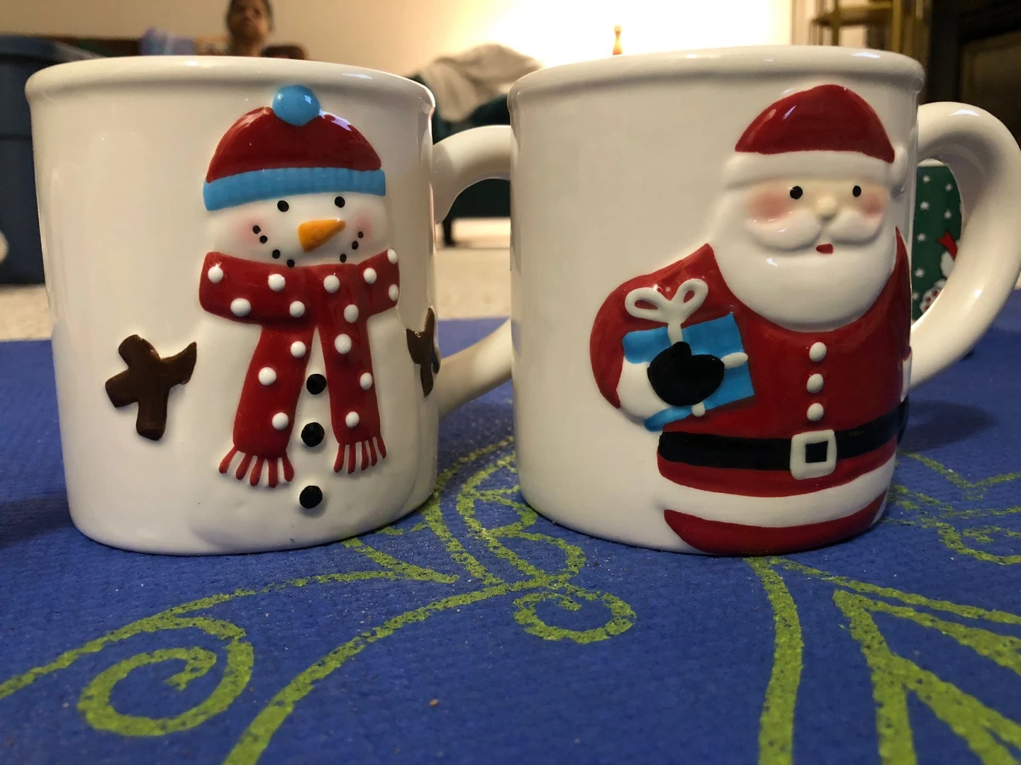 Selling a set of four holiday-themed mugs! Each mug features a different festive character: a penguin, a nutcracker, a snowman, and Santa Claus. Perfect for adding some cheer to your morning coffee or hot chocolate during the holiday season