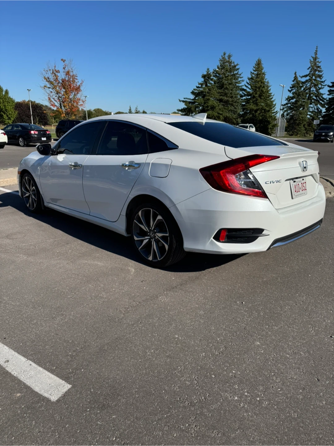 65Selling a white Honda Civic sedan. It's in great condition and ready for a new owner! Feel free to message me if you're interested!2019 Honda Civic touring certified for more info 4168243757