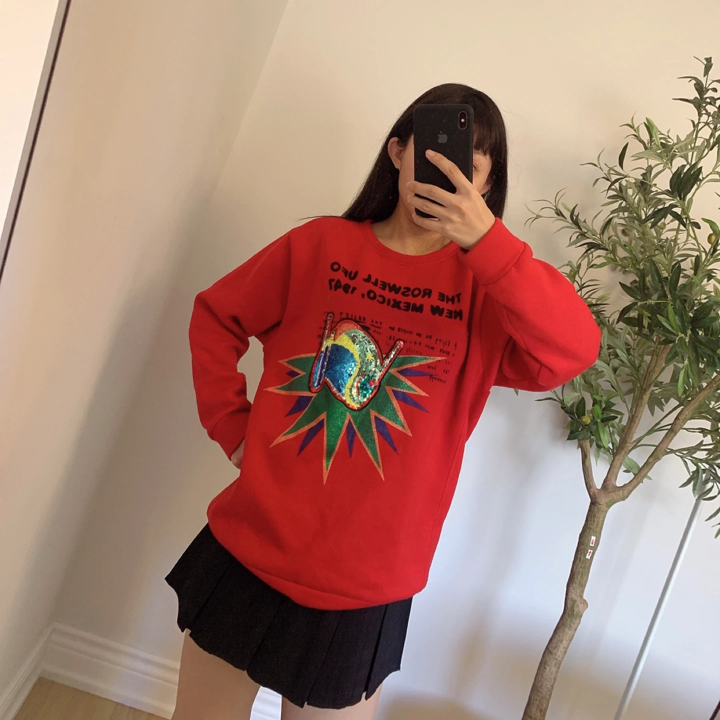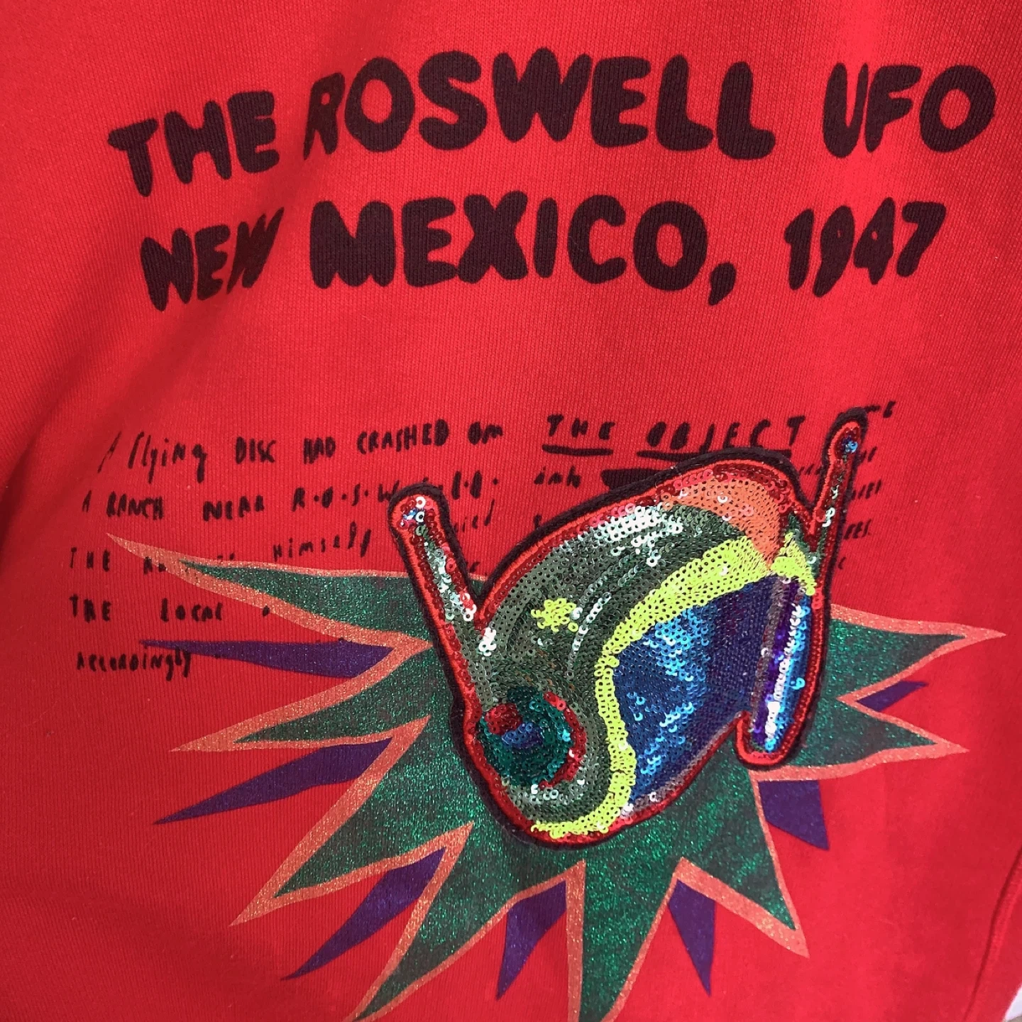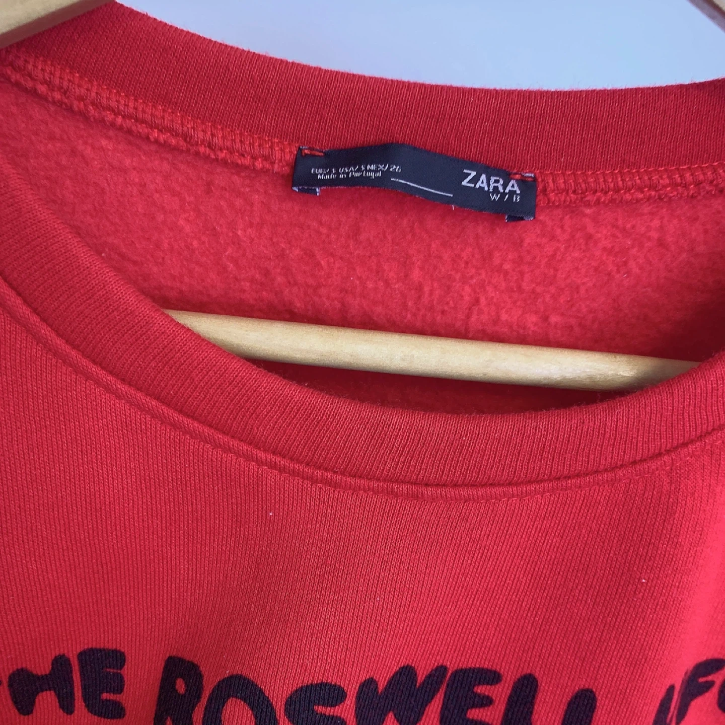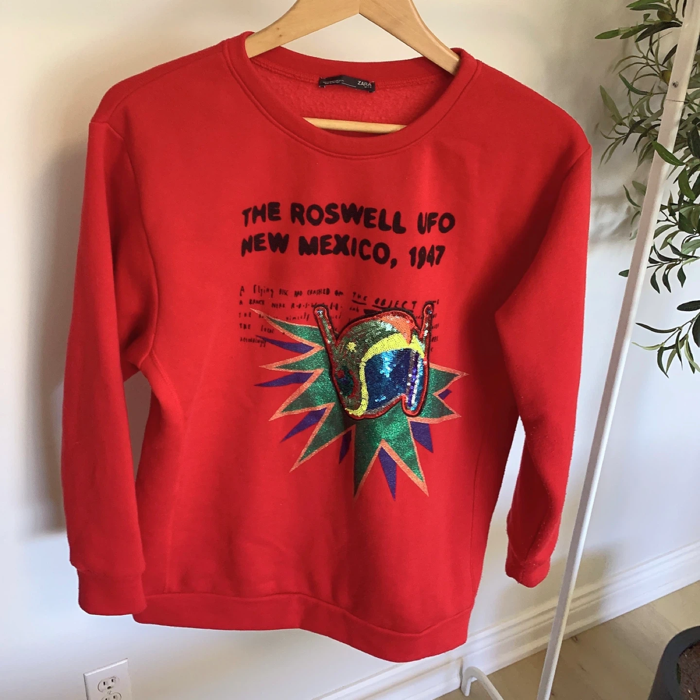 Red ZARA sweatshirt with a special sequin graphic on the front.