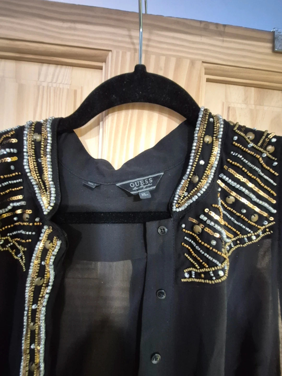 This GUESS Embroidered Sleeveless Blouse in size XL is a stylish and versatile addition to any woman's wardrobe. Made of black polyester, it features a pullover closure and intricate embroidered accents for a touch of sophistication. Perfect for casual occasions during the summer and spring seasons, this blouse is designed for regular sizing and is sure to become a go-to piece for any. fashion-forward woman.