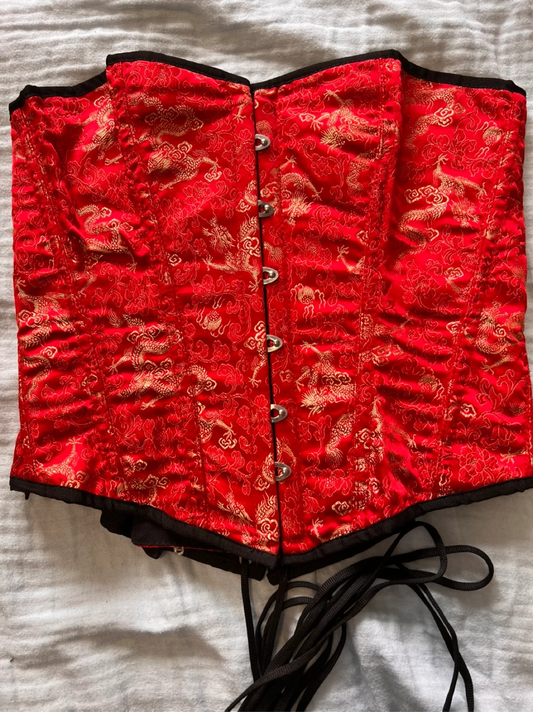 Vintage 1999 Victoria's Secret red and gold dragon silk blend corset