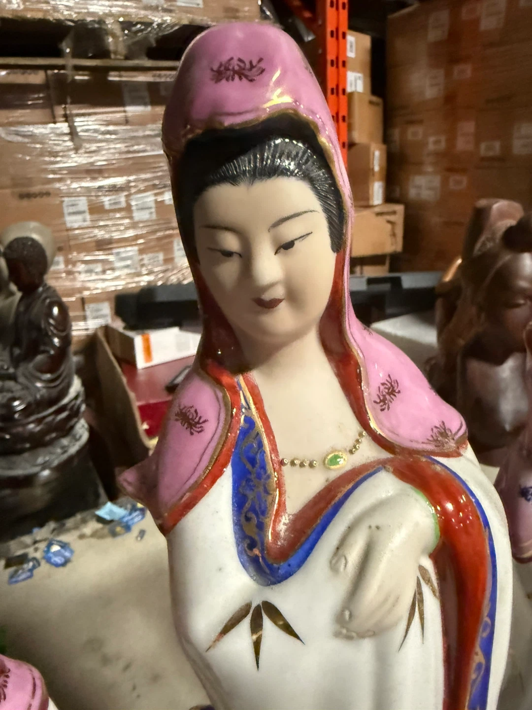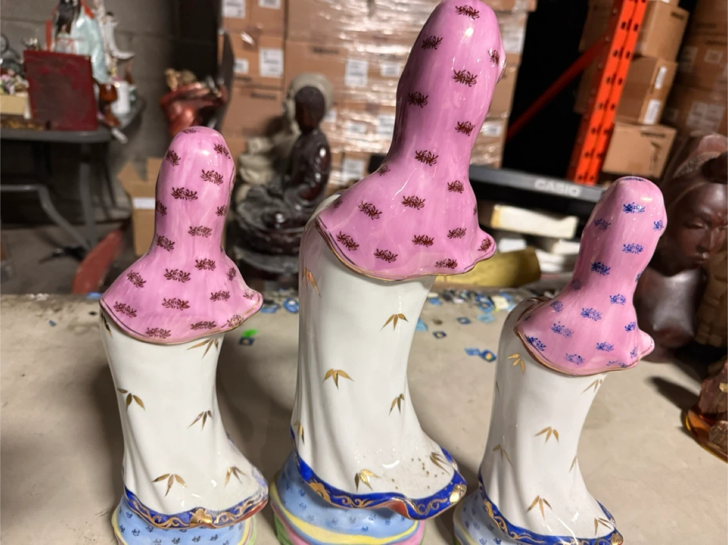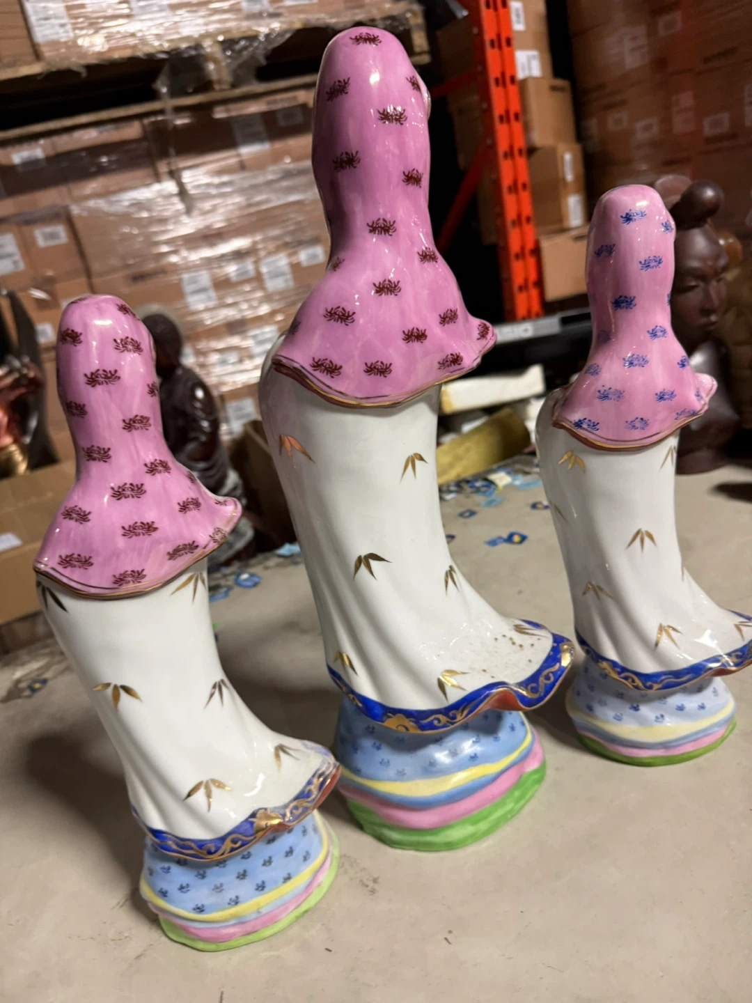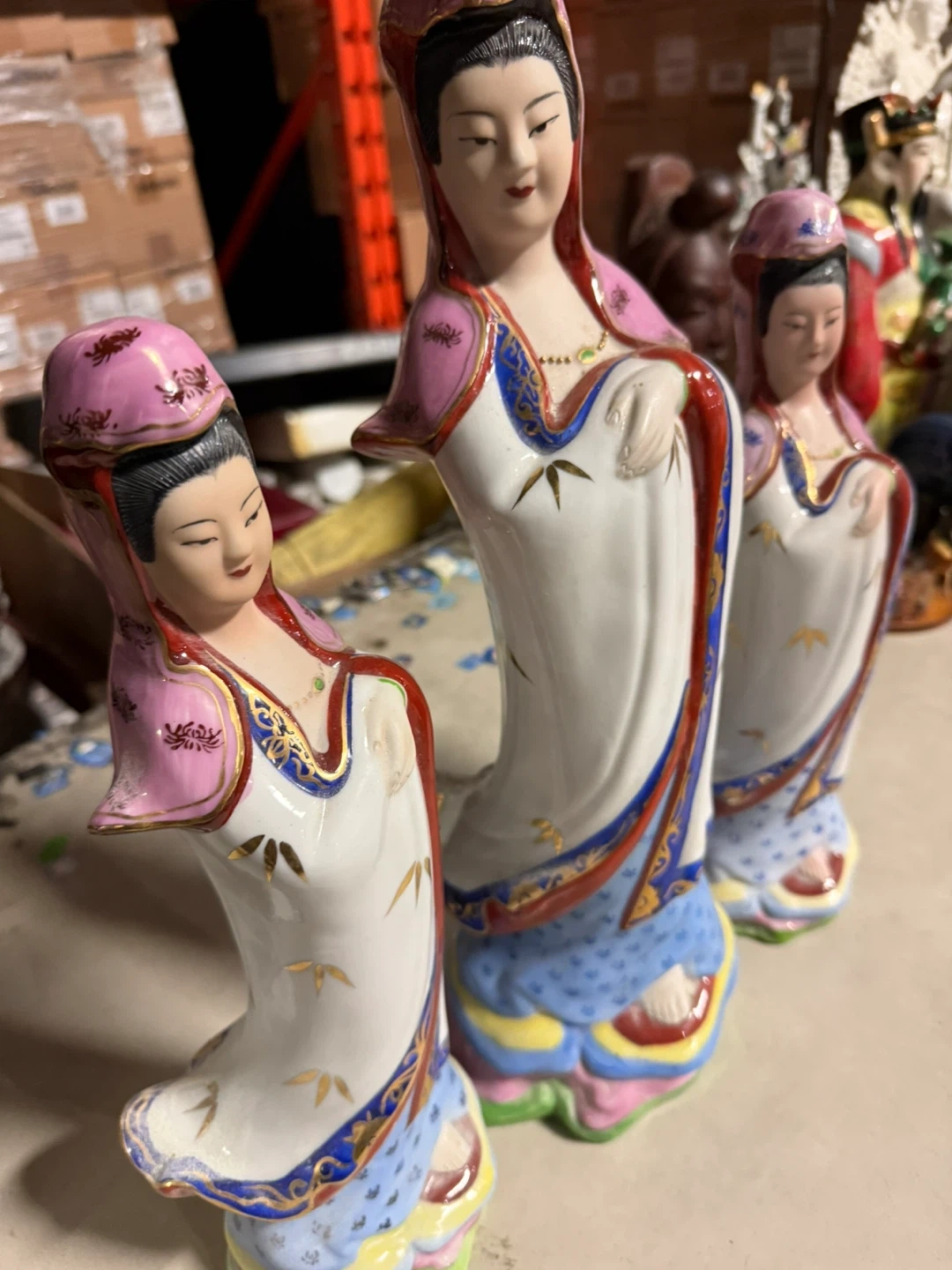 Selling a set of three lovely Guan Yin figurines. The tallest one is about 40 cm, and the other two are around 32 cm. They are in great condition and would look beautiful in any home!