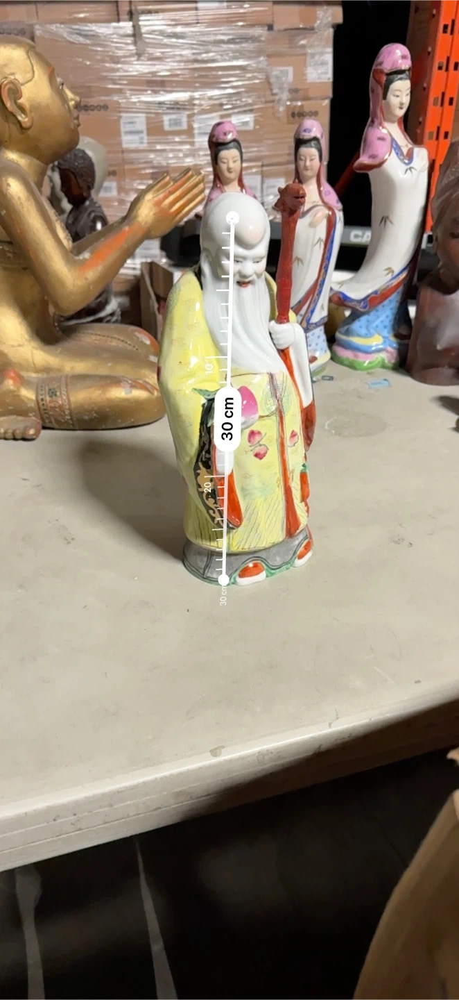 Selling a vintage ceramic figurine. It stands about 30cm tall and features intricate details and vibrant colours. A unique piece for any collector!